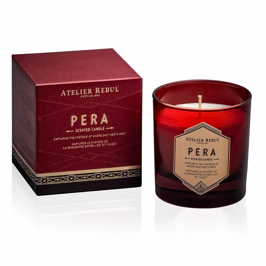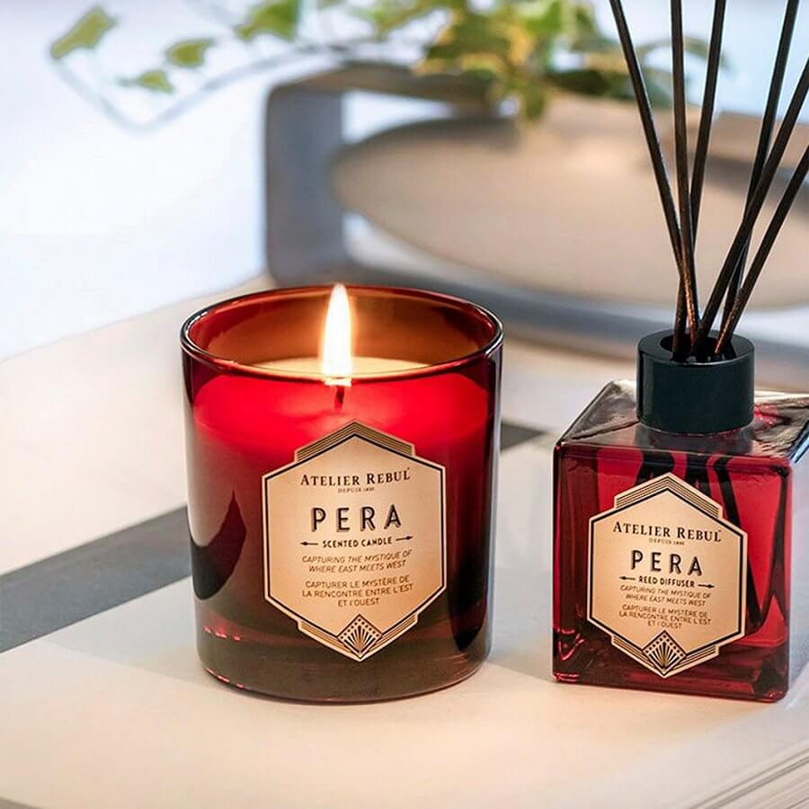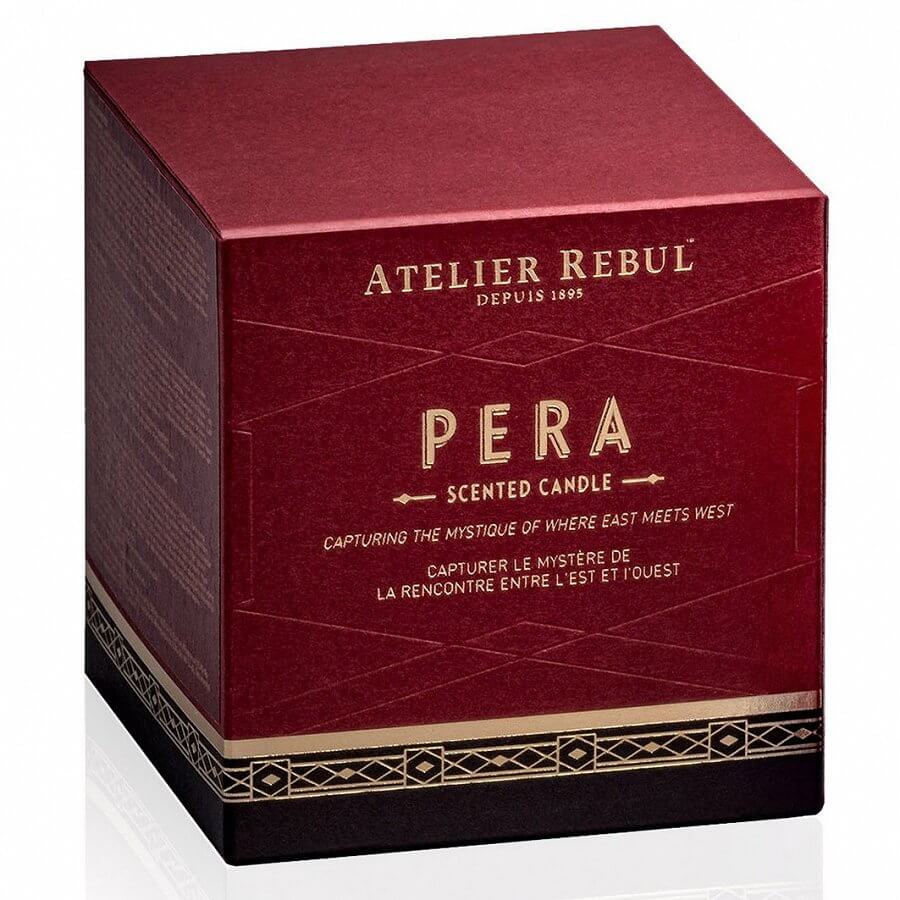 Pripravite se na doživetje skrivnostnega srečanja Vzhoda in Zahoda v ozkih ulicah Pere, rojstnega kraja Atelier Rebul, kraja, ki se nenehno obnavlja, a nikoli ne izgubi svojega dostojanstva. S svojo šik obliko dišeča sveča predstavlja dekorativen dodatek vašemu domu, njena aroma privlačnih lesnih in orientalskih not pa se bo hitro širila po prostoru in spremenila vzdušje v vašem domu. Sveča vsebuje note kardamoma, ingverja, popra, jasmina, orhideje, lokvanja, vrtnice, usnja, sandalovine, pačulija in črnega jantarja.