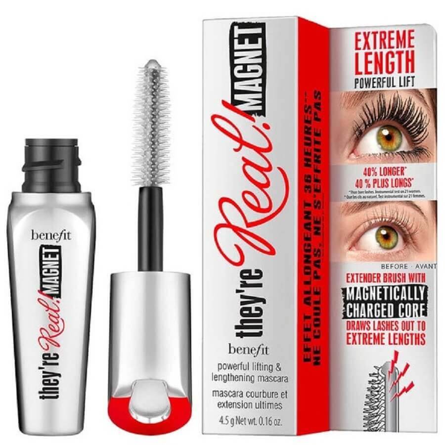 They're Real! Magnet je 36-urna maskara za podaljšanje* trepalnic, ki zaradi delovanja magnetne sile daje trepalnicam EKSTREMNO DOLŽINO, zato so videti 40% daljše**. Inovativna krtačka za daljše trepalnice ima magnetno nabito jedro, ki potegne formulo, obogateno z magnetnimi minerali, navzgor in PREKO konic trepalnic za izjemno dolžino in močan dvig. Posebno oblikovana cik-cak krtačka s strateško razporejenimi ščetinami razširi, loči in definira trepalnice.