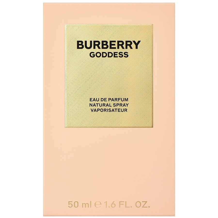 Burberry Goddess pripoveduje zgodbo o samoodkrivanju. Novo kampanjo spremlja Emma Mackey in ponos levinj. Emma, ki izžareva samozavest, moč in prijaznost, uteleša duh parfumske vode Burberry Goddess. Parfumska voda Burberry Goddess je edinstvena gurmanska aromatična dišava, ki jo vodi močan trio vanilije. Dišavo v zgornjih notah odpira vaniljev poparek z lesnimi tonalitetami, v srcu najbolj izstopa vaniljev kaviar z bogato sladkobo. Za nepozaben, dolgotrajen pečat na koncu poskrbi vaniljev absolut, obogaten s sijočo sivko. Ta čutna dišava je narejena iz veganske formule, ki vsebuje posebno izbrano vanilijo z Madagaskarja. Parfumska voda Burberry Goddess je obdana v elegantni kvadratni steklenički, ki je zasnovana za ponovno polnjenje. Refil za polnjenje je naprodaj ločeno. Bež gabardin in zlata embalaža, okrašena z medaljonom, prikazujejo bogato dediščino blagovne znamke Burberry.