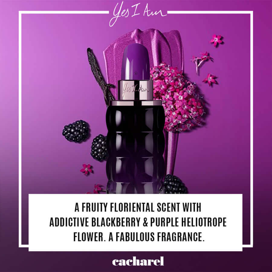 Yes I Am Fabulous je nov, zapeljiv izdelek iz kultne kolekcije Yes I Am, ki ga je ustvaril Cacharel. Neustavljiva čutna aroma deluje takoj. Pričakujte nepričakovano! Še bolj intenzivna in prodorna kremasto-cvetna mešanica sadno-cvetnih not z nalezljivim robidnim in vijoličnim cvetom heliotropa s pridihom svežega lešnikovega mleka.