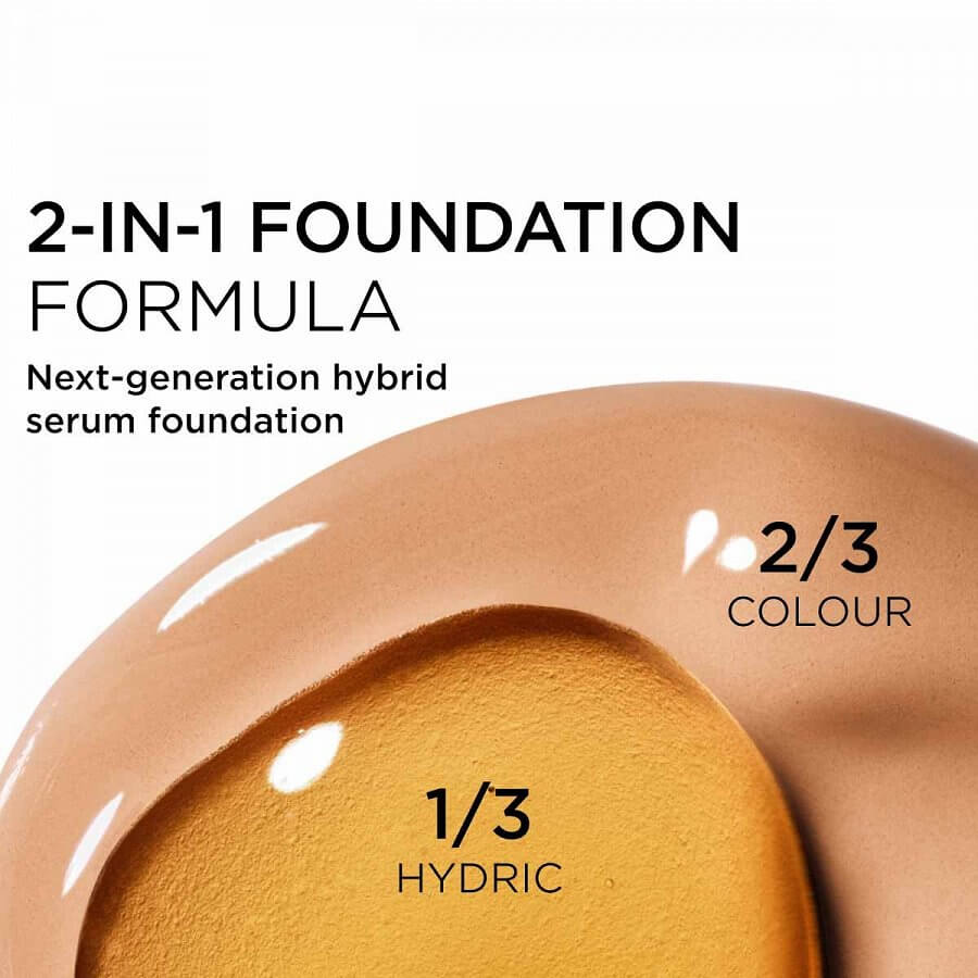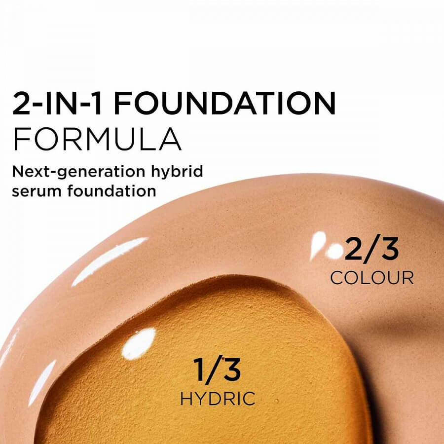 Serum-puder nove generacije – hibridna formula, ki z revolucionarno kombinacijo ličenja in nege kože prinaša novo raven mladostnega sijaja. Zahvaljujoč prilagodljivemu aplikatorju omogoča lahko, personalizirano prekrivanje od srednje do popolnega, z luminous satin zaključkom, ki ni masten. Na voljo je v 12 odtenkih.