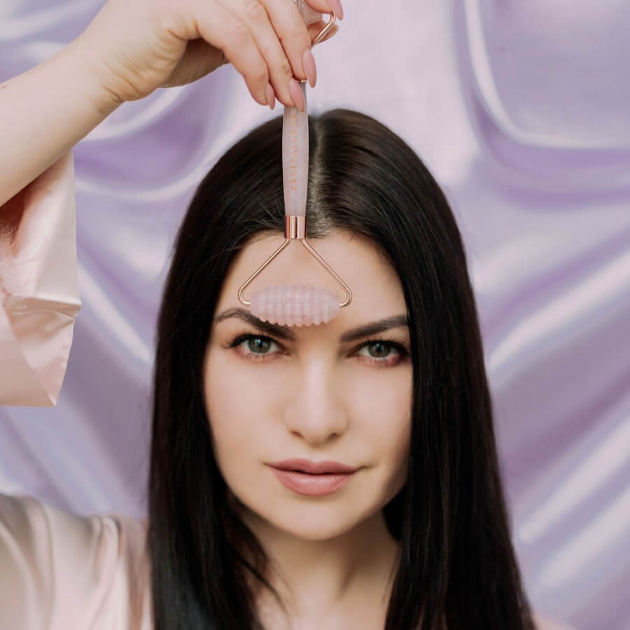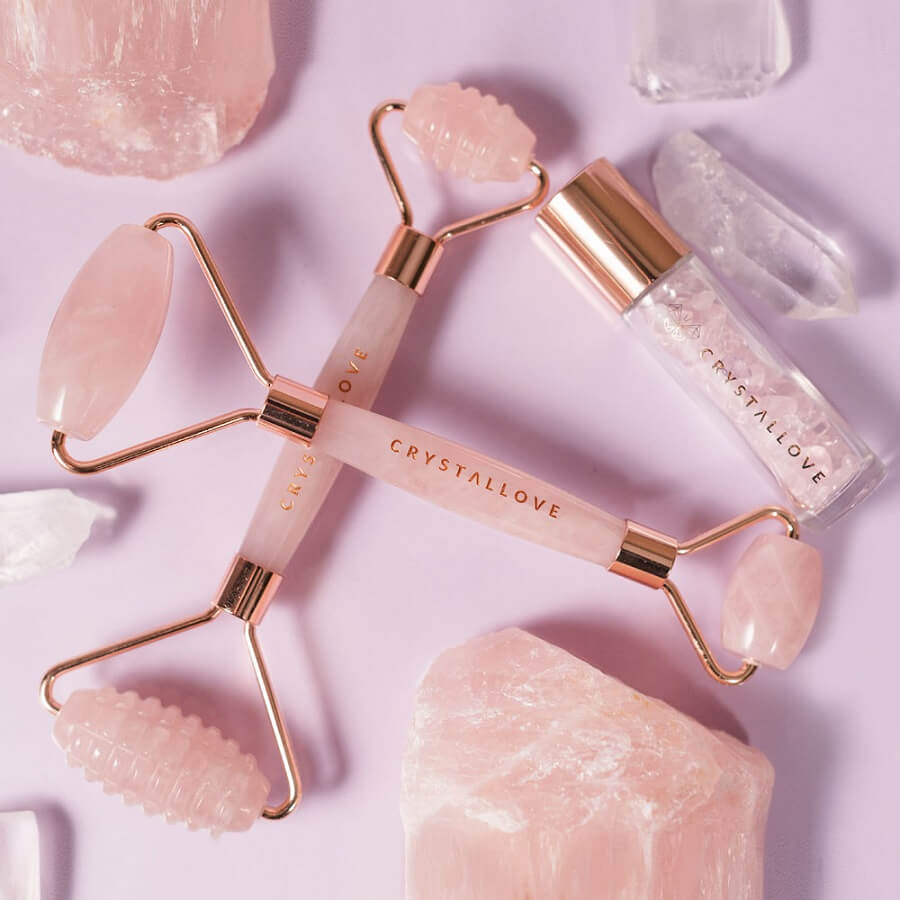 Crystallove 3D Rose Quartz Roller Masažer obraza