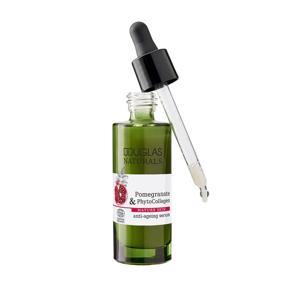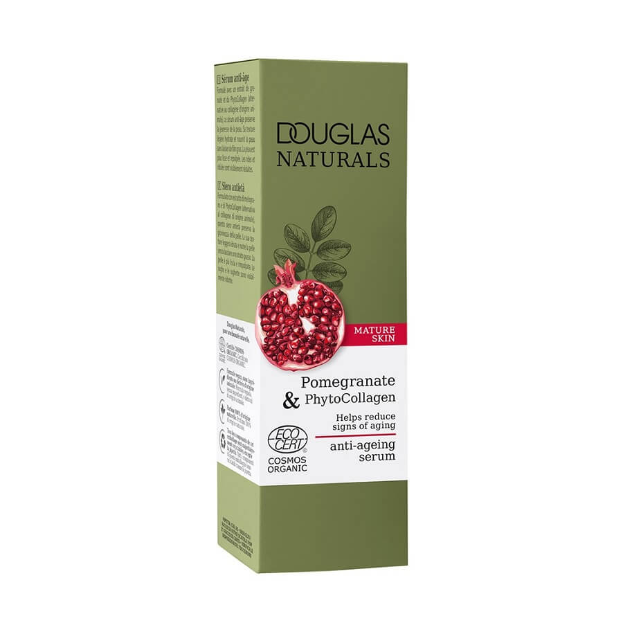 <p>Serum proti staranju Douglas Naturals navdušuje s svojo izjemno močjo proti staranju: obogaten z izvlečkom granatnega jabolka in fitokolagenom, alternativo živalskemu kolagenu, ta izredno lahek izdelek vlaži in poskrbi za polnejšo kožo. Prav tako zmanjša linije in gube ter poskrbi za gladko, mladostno in svežo kožo. Hitro se vpije in ne pušča sledi. Serum je posebej prilagojen potrebam zrele kože in ima Ecocert certifikat COSMOS ORGANIC.</p>