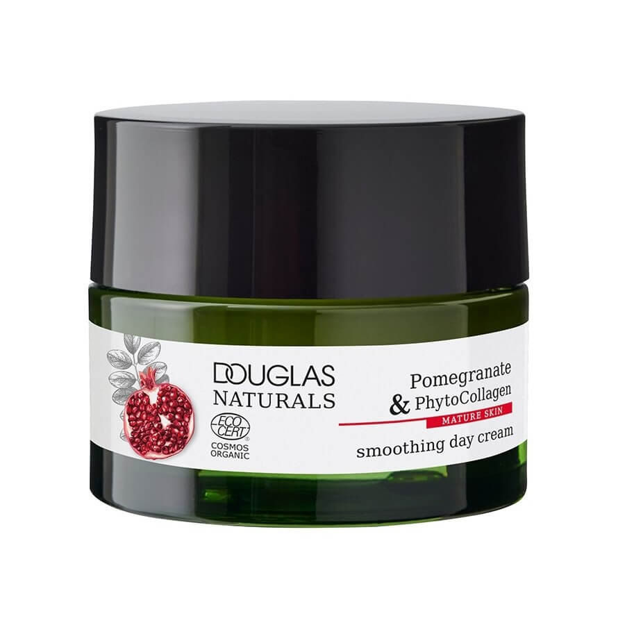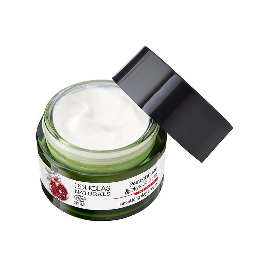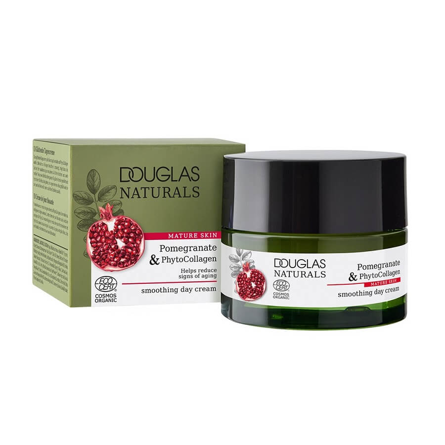 Pomirjujoča dnevna krema Douglas Naturals je popoln dodatek k vaši dnevni rutini nege kože. Formula, obogatena s fitokolagenom, alternativo živalskemu kolagenu, in izvlečkom granatnega jabolka, zmanjšuje znake staranja in poskrbi za gladko kožo. Poleg tega žametna krema vlaži kožo in ji daje mladosten sijaj. Posebej je prilagojena potrebam zrele kože in ima Ecocert certifikat COSMOS ORGANIC.