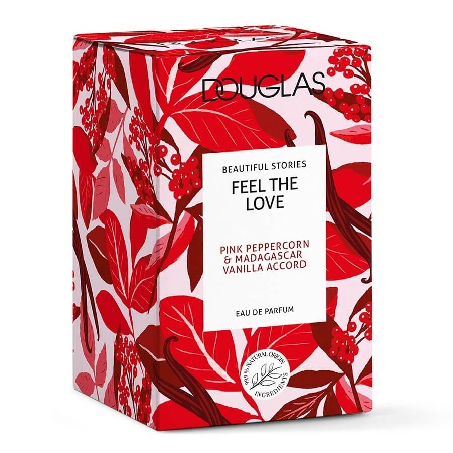 FEEL THE LOVE Eau de Parfum je ena izmed edinstvenih dišav iz Douglasove kolekcije Beautiful Stories. FEEL THE LOVE je cvetlično-orientalska dišava, ki požene srce in razkrije čisto strast. Začimbne note peneče pomaranče v kombinaciji z drznim rožnatim poprom ustvarijo poživljajočo in očarljivo zgornjo noto, ki ji sledi čutno srce izvrstnega ylang-ylanga, nežne vrtnice in elegantnih zelenih listov. Nalezljiva vanilija s prefinjenim sladkim benzoinom se zlije z živahnimi notami mošusa in pačulija v osnovi.