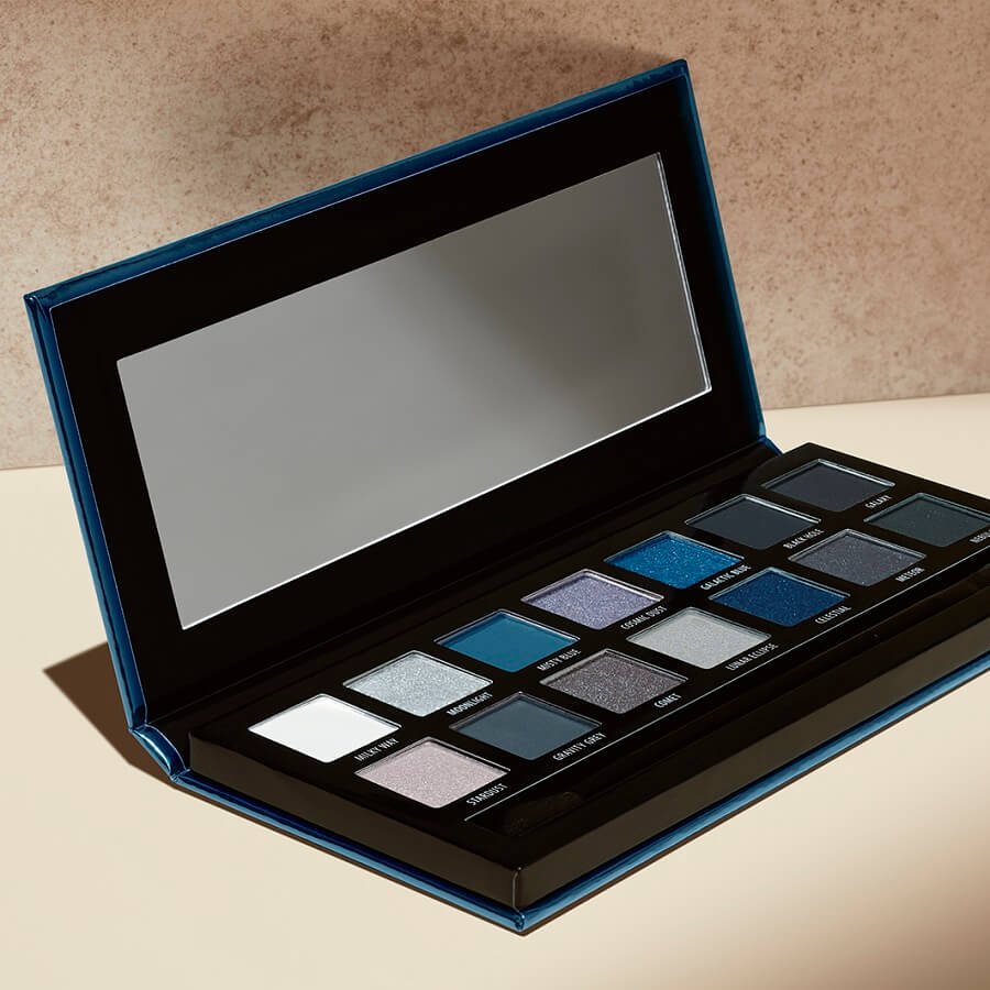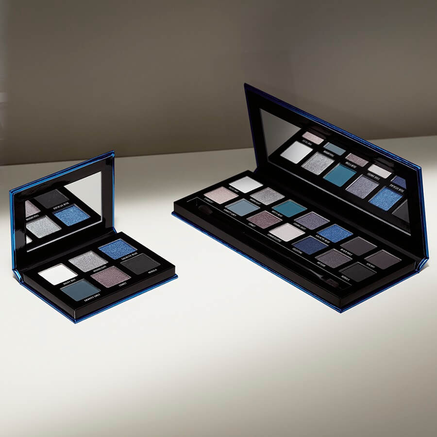 Interstellar Smokey paleta senčil iz kolekcije Douglas navdušuje s 14 čudovitimi odtenki v širokem spektru modrih, rjavih in sivih tonov, zaradi česar je nepogrešljiva za sofisticirane make-up videze. Senčila, brez vsebnosti talka in s svilnato teksturo, ustvarjajo mat, metalik in svetleče zaključke ter odpirajo vrata v svet stilskih idej. Če potrebujete dodatno inspiracijo, boste na temno modri paleti našli QR kodo, ki vas bo preko pametnega telefona popeljala do video vodiča profesionalnega vizažista. Za uporabo na poti je paleta na voljo tudi v prikupni mini različici s 6 odtenki.