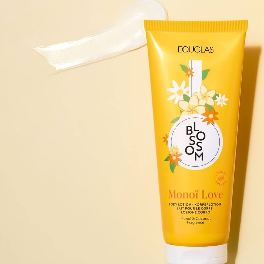Losjon za telo Monoï Love iz linije Douglas Blossom vnese pozitivno energijo v vašo nego kože. Njegova kremasta, mlečna tekstura se vpije v kožo in pusti prijeten občutek. Obogaten s hranljivimi sestavinami losjon kožo navlaži in ji podari neprimerljivo mehkobo. Losjon za telo diši po monoï olju, pridobljenem iz cvetov tiaré, in kokosu. Embalaža, okrašena s cvetličnimi motivi v poletni rumeni barvi, slavi raznolikost rastlinskega sveta in dviguje razpoloženje.