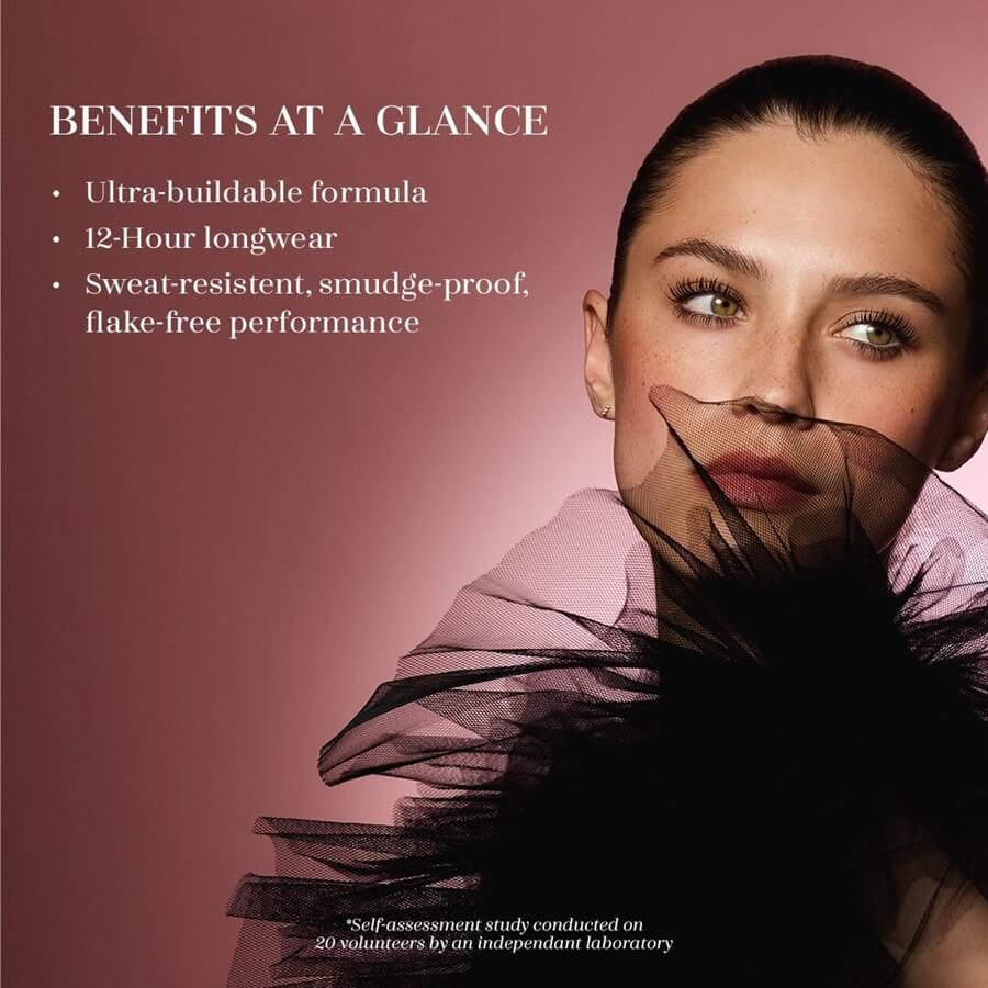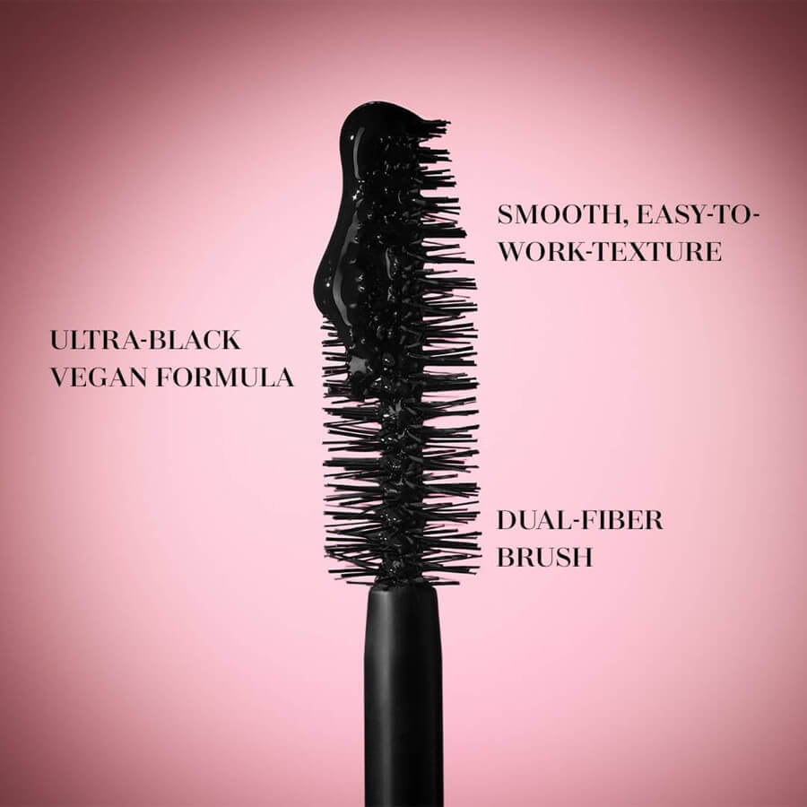 The Dramatizer Mascara iz kolekcije Douglas poskrbi za neprimerljivo dramatičen pogled. Inovativna krtačka z dvojnimi vlakni ovije vsako posamezno trepalnico z vegansko formulo globoko črne barve ter zagotovi do 73 %* več volumna in 51 %* več dolžine. Z vsakim dodatnim nanosom te maskare se okrepi očarljiv panoramski učinek – za oči, ki nikogar ne pustijo ravnodušnega. Maskara se ne drobi in ne razmaže, je odporna proti znoju ter obstojna do 12 ur. Več dolžine, več volumna, več drame – od korena do konic.