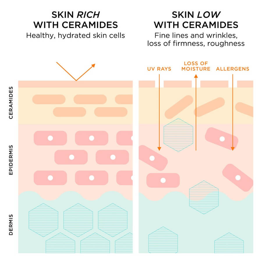 Predstavljajte si opečnato steno. Po letih izpostavljenosti prične vezivo med opekami pokati. Vaša koža ni nič drugačna. Z leti ceramidi (vezivo) ne nastajajo več z enako hitrostjo, kar privede do opaznega upada ceramidov po 30 letu in še večjemu upadu po 40 letu starosti. Koža postane zgubana, suha, pojavi se neizenačen ton in izguba čvrstosti.