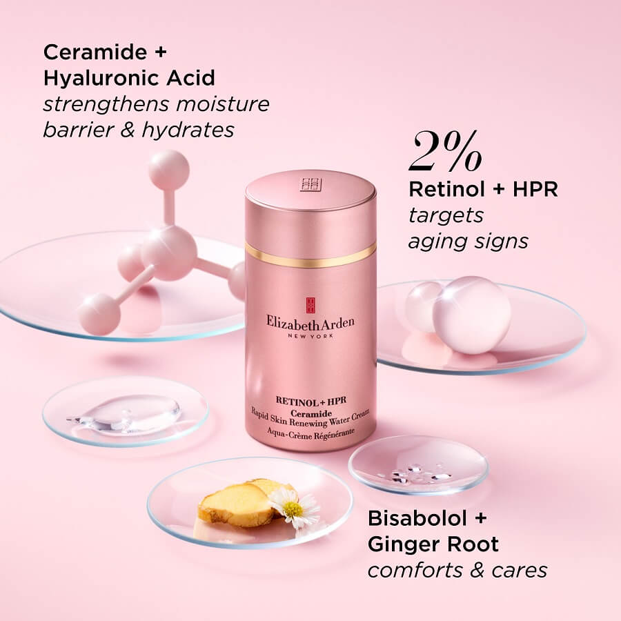 https://www.douglas.si/p/elizabeth-arden-retinol-hpr-ceramide-water-cream-a0133041A0133041Retinol + HPR Ceramide Water Creamhttps://media.douglas.si/media/image/22/93/03/A0133041.jpg114.99114.99EURInStockObraz/Nega obraza/Kreme za obraz<p>Odkrijte novo raven delovanja retinola brez tipične reakcije retinola. Že po prvi uporabi ta močna, a nežna vlažilna krema pusti kožo nahranjeno, sijočo in revitalizirano. V enem tednu so gube in pore vidno zmanjšane, koža je bolj čvrsta, tonus in tekstura pa izboljšana. Formulirano s čistim retinolom in HPR, retinolom naslednje generacije, peptidi za učvrstitev kože, ceramidi za krepitev bariere za vlago, hialuronsko kislino za polnjenje in rastlinami, ki pomirjajo kožo.</p>