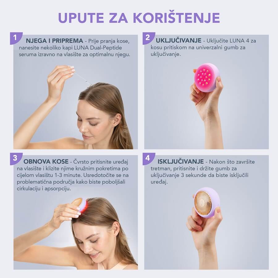<p>Odpravite nabiranje olja in prhljaja na lasišču ter hkrati okrepite svoje lase z napravo LUNA™ 4 hair, revolucionarnim masažerjem za lasišče, za katerega je klinično dokazano, da v samo enem mesecu bistveno poveča debelino las in zmanjša njihovo izpadanje.</p>
