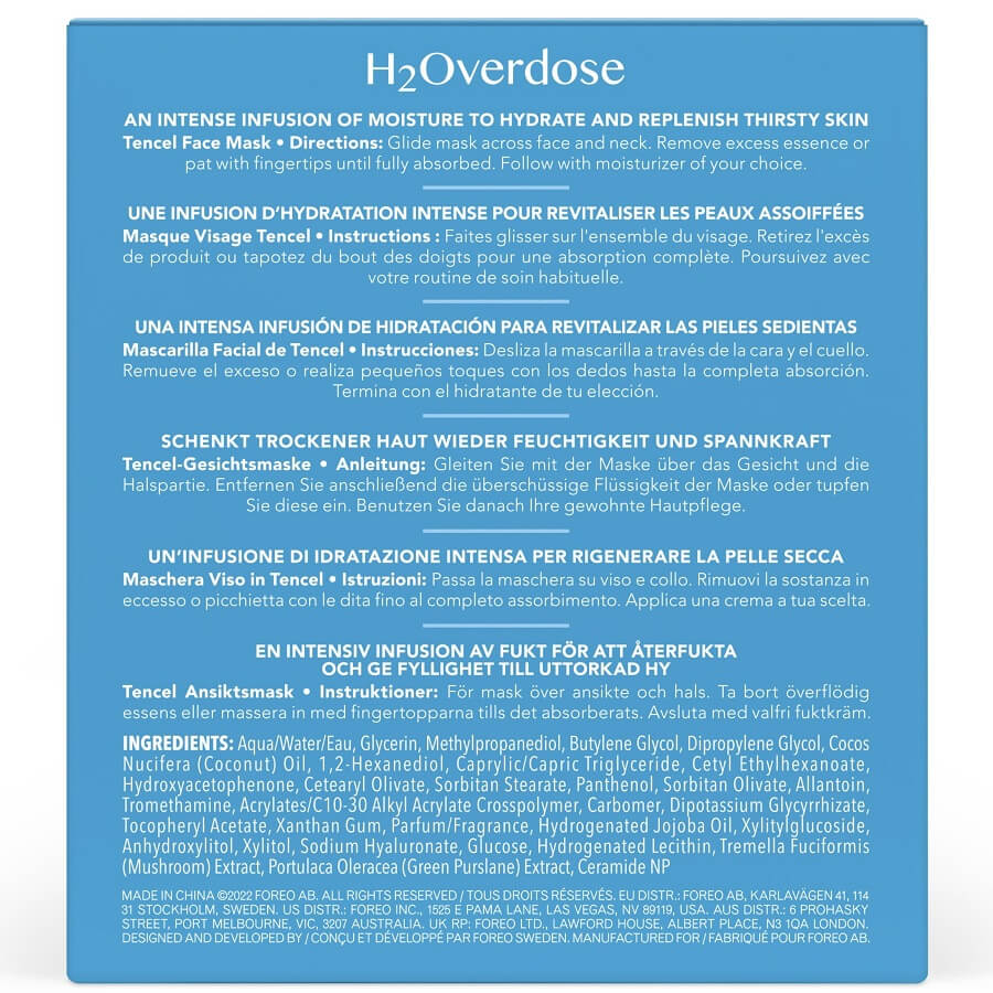 Izjemno vlažilna maska za obraz H2Overdose 2.0 povrne idealno hidracijo in v trenutku obnovi izjemno suho kožo, ki je na občutek neprijetno zategnjena. Izkorišča moč zelene in rdeče LED luči, prijetno toploto, ki širi pore, in vrhunski seznam sestavin, ki vsebuje 91 % naravno prisotnih spojin. Občutno zmanjša izgubo vode, ki vodi do suhe in krhke kože, krepi kožno pregrado in zagotavlja popolno uravnoteženo vlaženje.