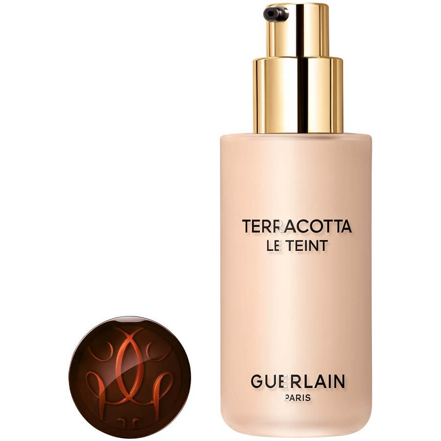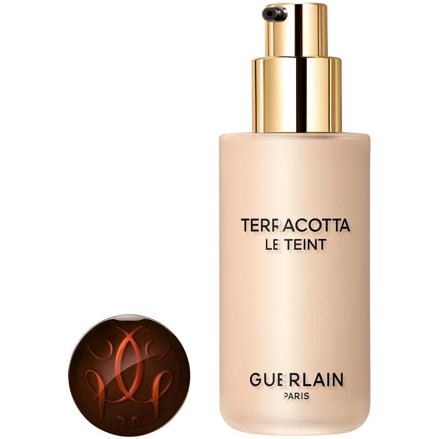 Zahvaljujoč Guerlain Terracotta Le Teint so obrisi obraza redefinirani: novi tekoči puder, formuliran s 95 % sestavin naravnega izvora¹. Združuje lahkotnost in sijaj pudra v prahu s popolnostjo tekočega pudra. Njegova 24-urna² formula brez prenosa (no-transfer) zagotavlja čudovit zdrav sijaj, kot bi se ravnokar vrnili z narave, medtem ko arganovo olje neguje kožo obraza.