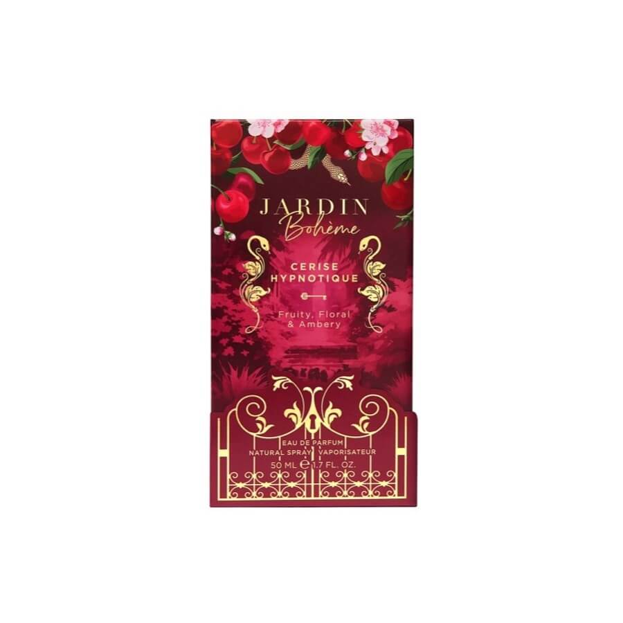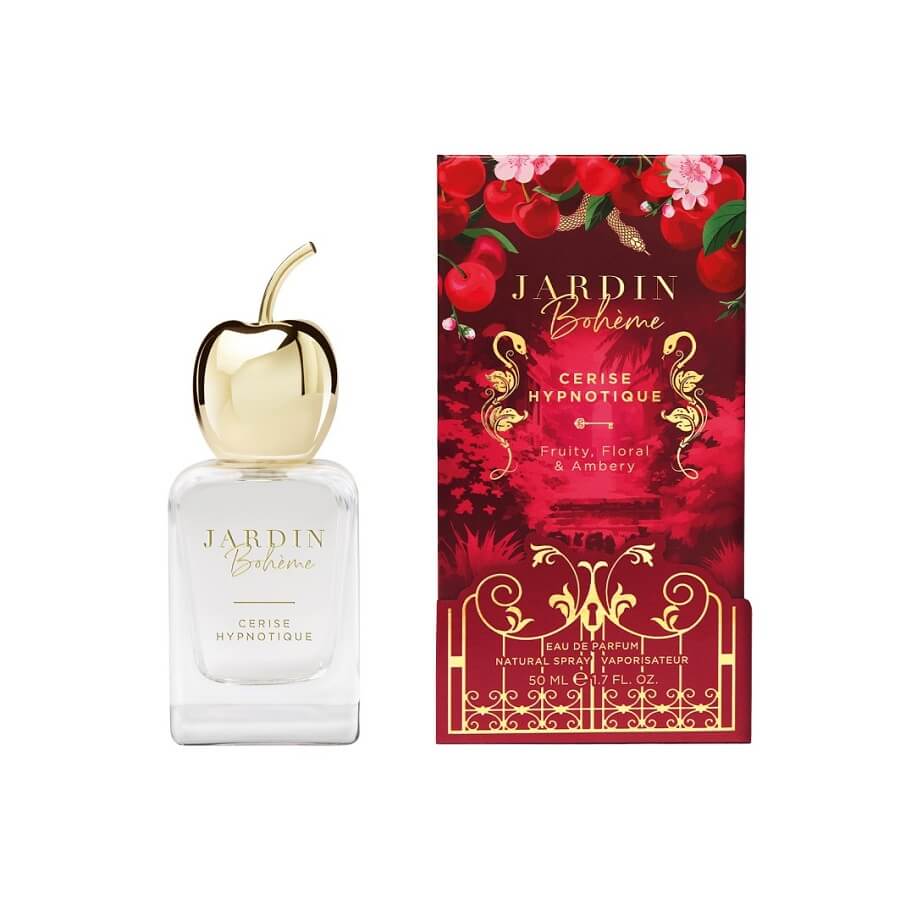 Naj vas popelje v očarljiv svet prepovedanih sadežev in se prepustite očarljivi skušnjavi in zapeljivi dišavi najbolj zapeljive kolekcije Jardin Bohème. Cerise Hypnotique se odpre z opojno eksplozijo črne češnje, kot prepovedan poljub, ki jo ogrejejo gurmanske note mandlja in kanček ruma. V srcu te parfumske vode se razkrije čutni šopek jasmina, cveta pomarančevca in črnega trna, ki doda globino in eleganco. Osnovna nota razkriva kremasto sandalovino, obdano z vanilijo in zlatim odtenkom jantarjem, ki pušča sled neustavljive privlačnosti.