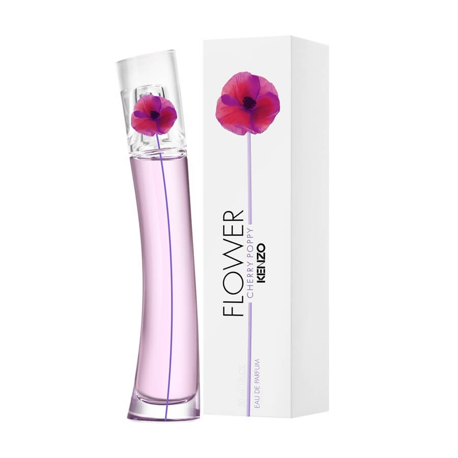 FLOWER CHERRY POPPY je sestavljen iz 91% naravnih sestavin. Legendarno stekleničko FLOWER tokrat krasita rožnati in vijolični mak KENZO.
