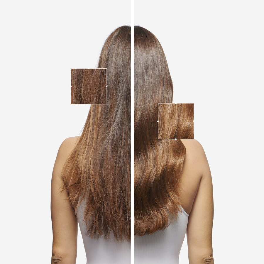 Nanesite 1 do 2 potiska olja Elixir Ultime L'huile Originale na mokre ali suhe lase kot nego brez izpiranja. Začnite na sredini dolžine las in se pomikajte proti konicam. Na koncu pričesko uredite po potrebi.
