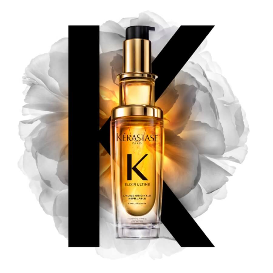 Naše najbolje prodajano, ikonično olje za lase Kérastase Elixir Ultime ima zdaj polnilo in to je steklenička, ki dopolnjuje originalno embalažo. To olje za lase, ki se ne izpira, s svojim nepozabnim sijajem in brezčasno dišavo zagotavlja mehkobo in nahrani lase, zaradi česar je idealno za puste lase. To zelo razkošno olje za lase je oblikovano s kombinacijo divje kamelije in francoske kamelije, nežno ročno nabrane v Bretanji v Franciji.