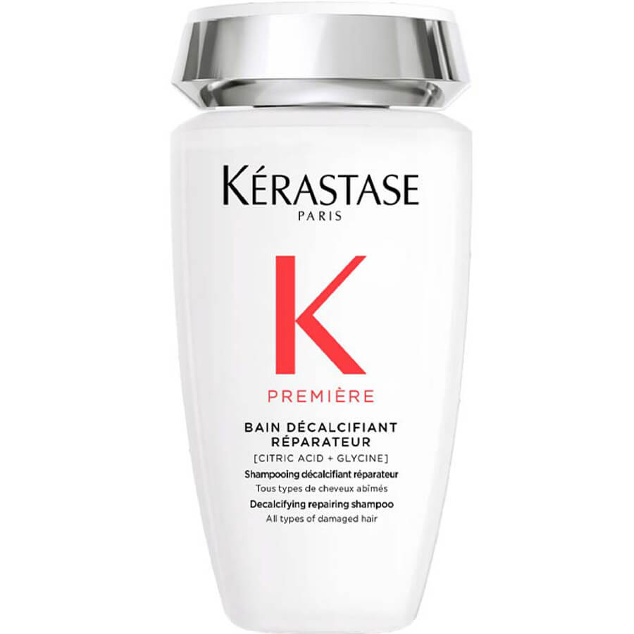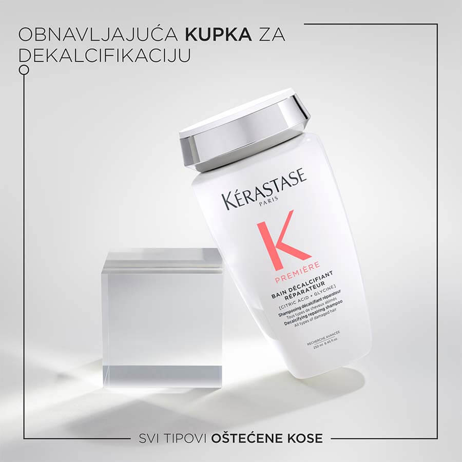 Kérastase Première Bain Décalcifiant Réparateur je kopel za odstranjevanje kalcija, obnavljanje las za vse tipe poškodovanih las. Ta profesionalna kopel brez sulfatov nežno očisti lasišče in lase, hkrati pa odstrani kalcij, ki dodatno oslabi tretirane lase. Lasje so popravljeni od znotraj navzven, zmanjša se lomljenje in povrne se njihovo zdravje in sijaj.