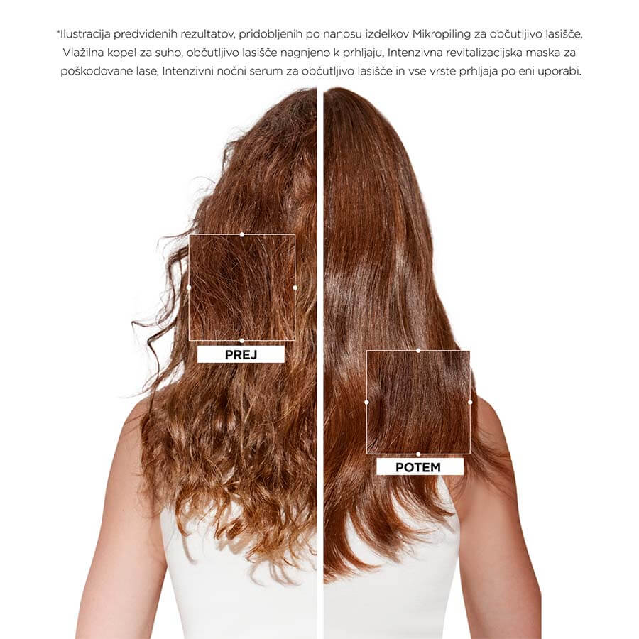 *Po nanosu Pomirjujoče nege za občutljivo lasišče in razčesavanje las, nagnjenih k prhljaju