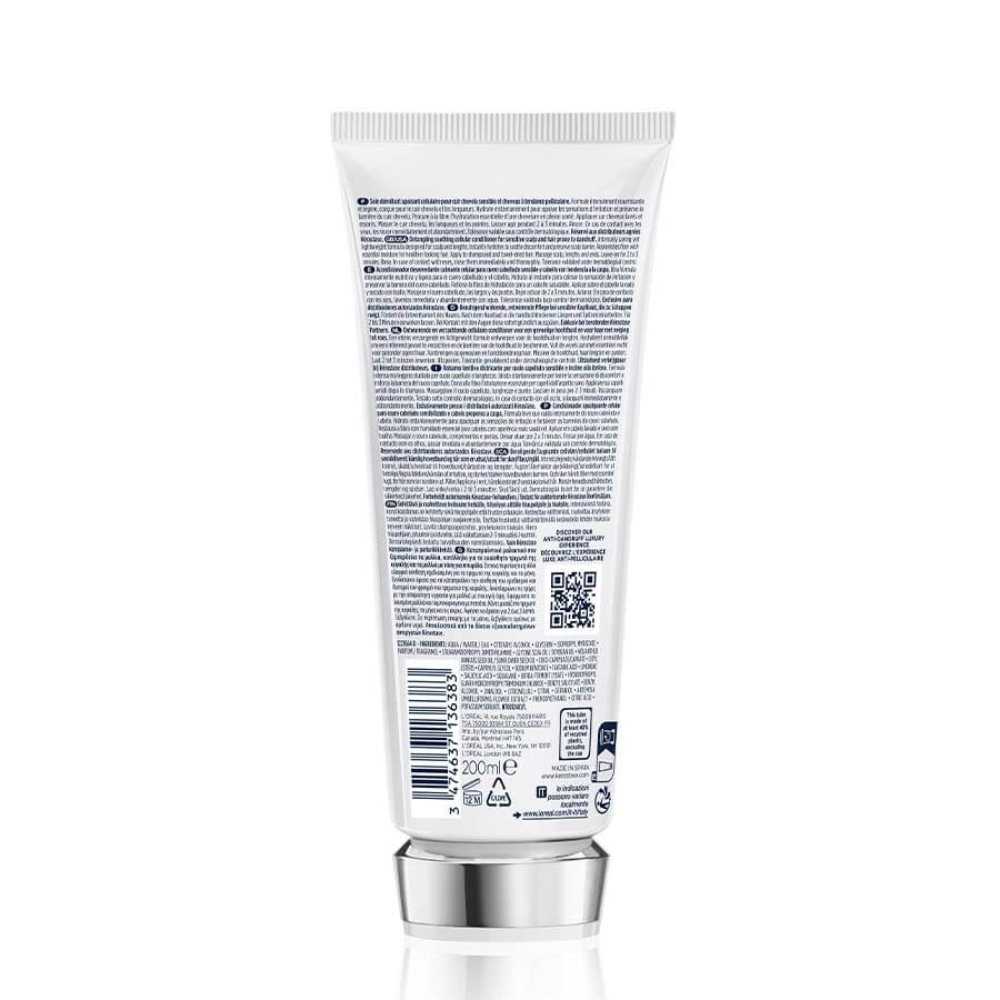 Pomirjujoča nega za razčesavanje za občutljivo lasišče in lase, nagnjene k prhljaju.