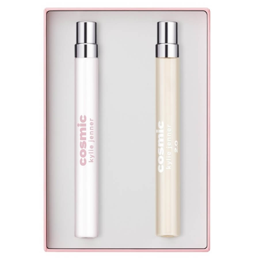 Izkusite celotno potovanje Cosmic Kylie Jenner s sladkim, pomirjujočim vonjem originalne dišave Cosmic Kylie Jenner in z lahko, svežo dišavo Cosmic Kylie Jenner 2.0. Ta darilni set parfumske vode vključuje obe dišavi v potovalnem pršilu v obliki pisala, ki je kot nalašč za uporabo na poti.