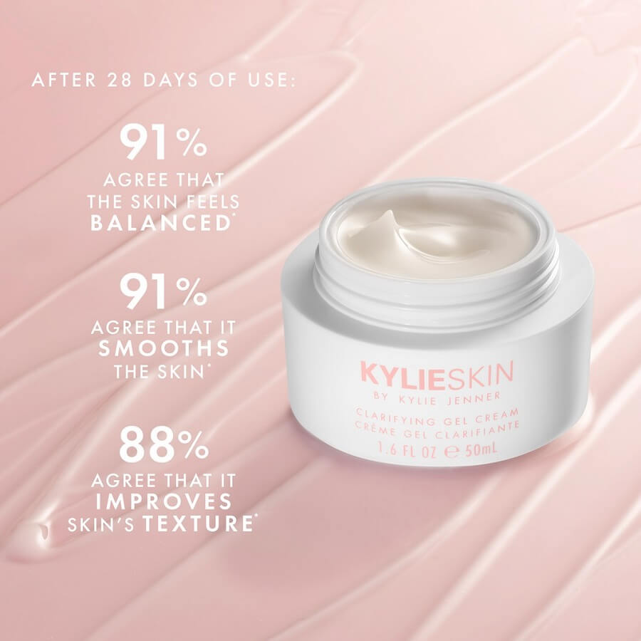 Kylie Skin's Clarifying Gel Cream je polna sestavin, ki ne le očistijo, zbistrijo in uravnovesijo kožo, ampak tudi zagotavljajo optimalno prehrano, mehčanje in sijaj. Salicilna kislina (BHA) zagotavlja nežen kemični piling z lastnostmi uravnoteženja za takojšnjo poenotenje in posvetlitev kože, medtem ko niacinamid pomaga naravno osvetliti pigmentne madeže in izboljša polt. Gel-krema na vodni osnovi brez olja kožo intenzivno vlaži do 6 ur ter jo s pantenolom pomirja in zmanjšuje rdečico. Edinstvena formula je večnamenska: samostojno zjutraj kožo nekoliko prebudi, je odlična za uporabo v večerni negi, zahvaljujoč svoji breztežni, zračni in nelepljivi teksturi pa je tudi odlična podlaga za ličila. Veganska čistilna gel krema je idealna za vse tipe kože in zna razvajati predvsem mastno in mešano kožo.