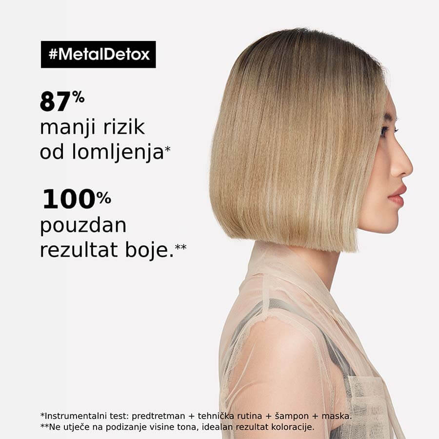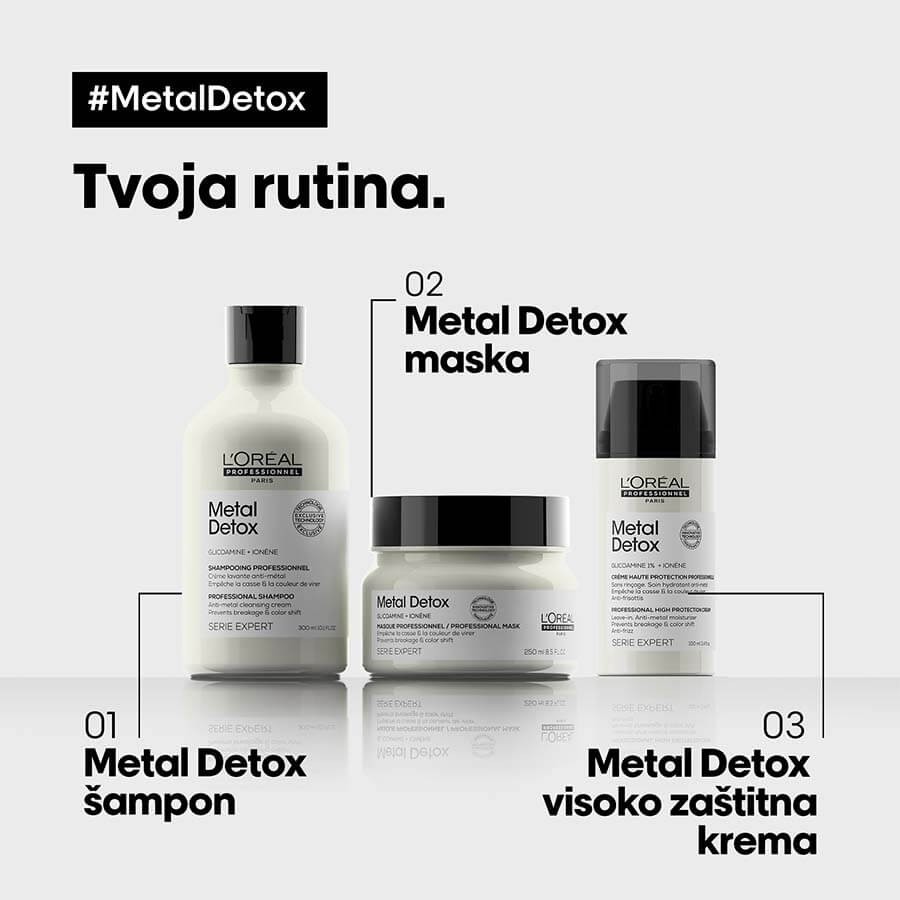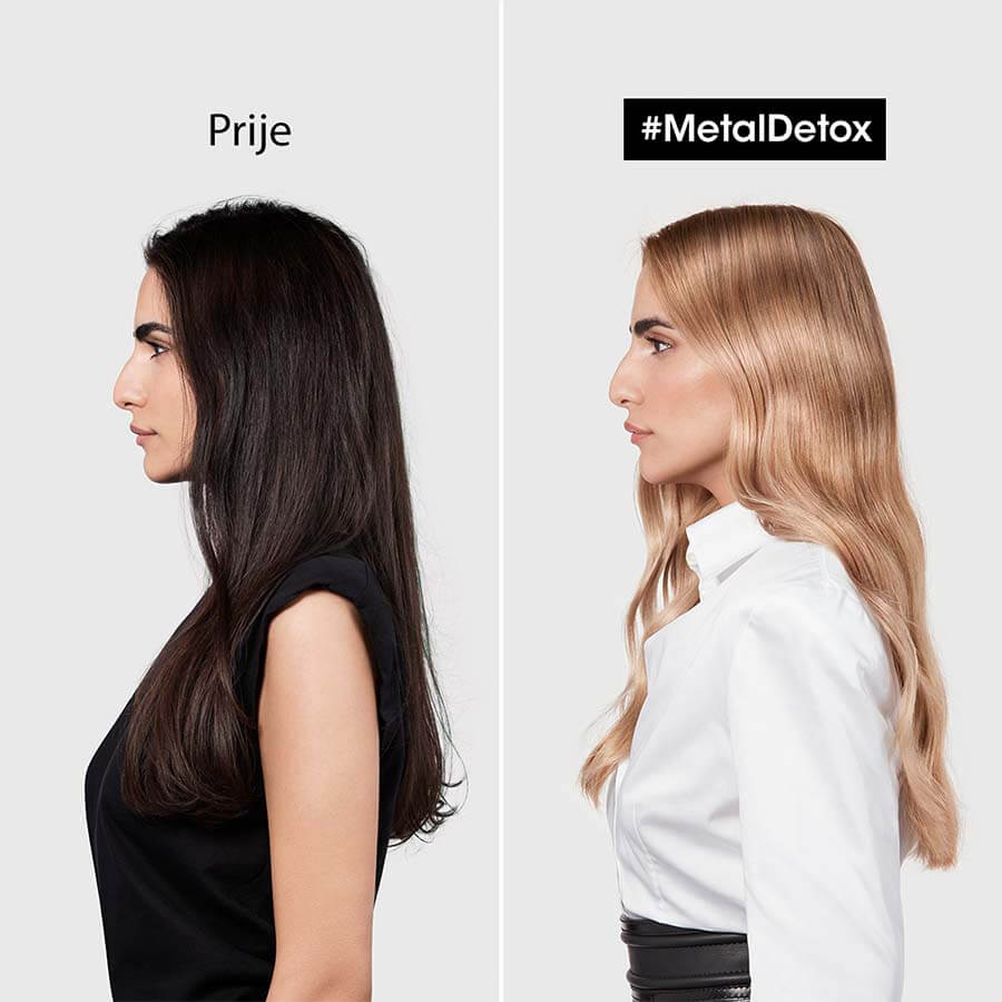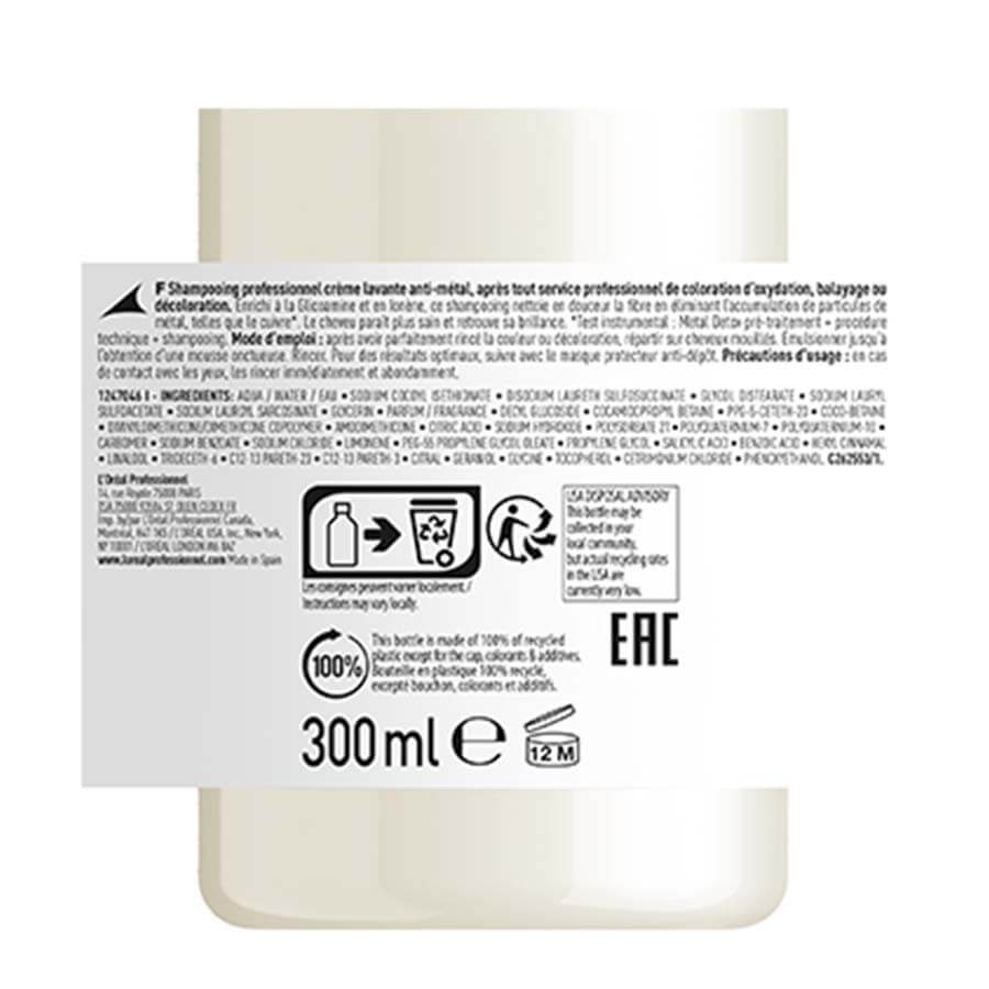 Profesionalni kremni šampon za čiščenje kovin. Obogaten z glikoaminom in jonenom, ta šampon nežno očisti lase pred usedlinami kovinskih delcev, kot je baker*. Lasje so videti bolj zdravi in imajo lepši sijaj. * Instrumentalni test: predobdelava Metal Detox + tehnični postopek + šampon.