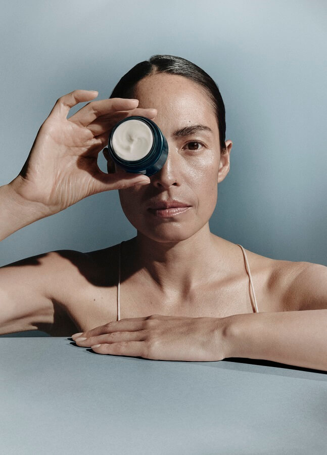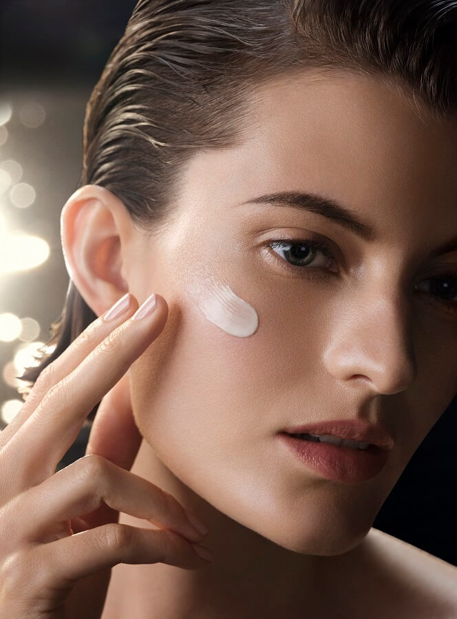 Kot zadnji korak pri večerni negovalni rutini nanesite majhno količino na konice prstov in jo nežno vtrite v kožo. Nanesite na lica, čelo, brado, čeljust in vrat. Idealno za uporabo zvečer.