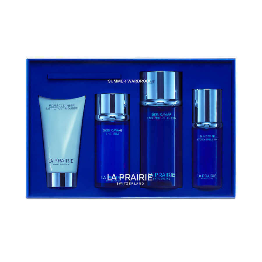 La Prairie je oblikovala popolno poletno kolekcijo za nego kože v ekskluzivnem setu. Odkrijte štiri ključne izdelke za nego kože, združene v potovalnem pakiranju: Foam Cleanser, Skin Caviar The Mist, Skin Caviar Essence-in-Lotion in Skin Caviar Hydro Emulsion. Vsi izdelki so primerni za potovanja – za čiščenje, učvrstitev in osvežitev kože kjerkoli in kadarkoli.