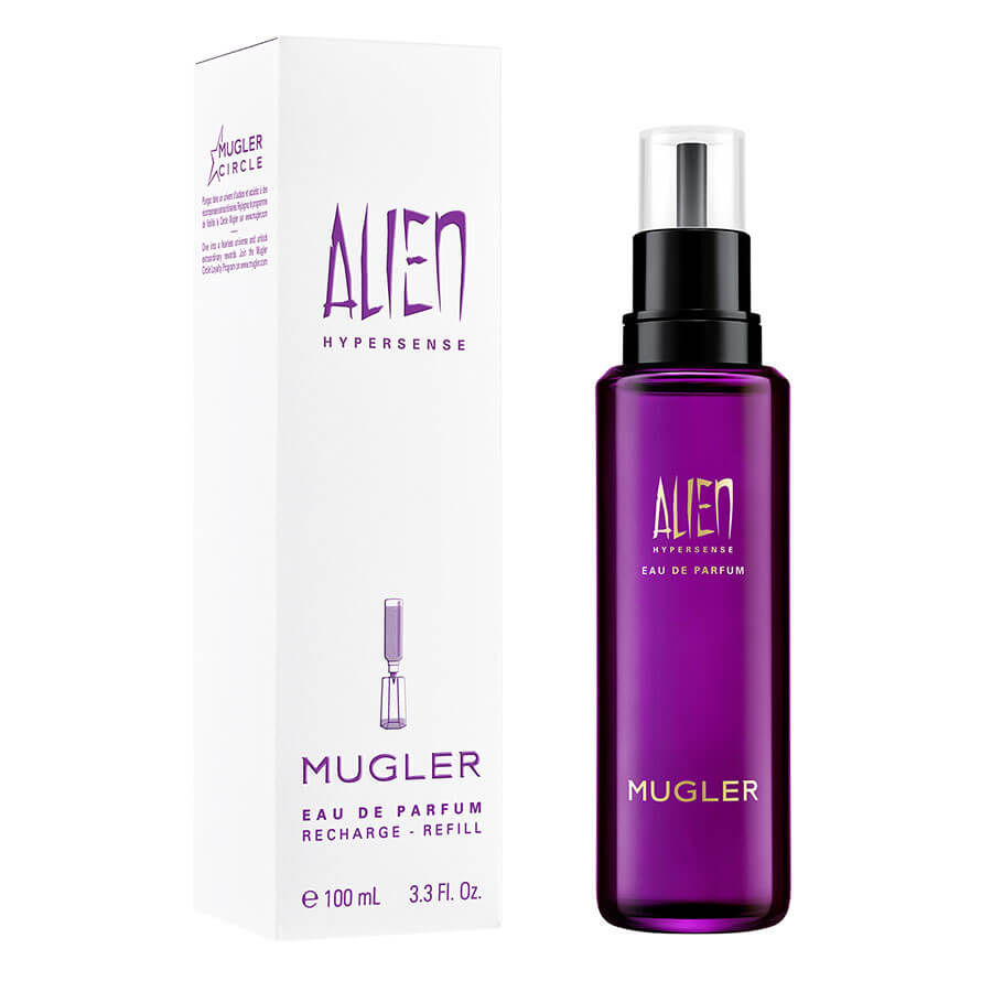 Hipnotična in včasih nevarna. Z eno samo razpršitvijo dišave se preobrazi navzven in navznoter, njenih pet čutov pa je okrepljenih. Vid, sluh, okus, dotik, vonj ... Vse čuti pretirano, povezano s svojo najbolj pristno, prvinsko dušo. To je njena moč, njen užitek, njen nefiltrirani jaz. Muglerjeva muza Alien, ki je v svojem bistvu še vedno dobrohotna, vam ponuja moč za dostopanje do polnega spektra svoje čutnosti. Čudna in čudovita prihaja po vas, ujela vas bo, vas preobrazila in vas povabila, da z novim vonjem izkusite svoje najmočnejše občutke. Parfumska voda Alien Hypersense pomeni preobilje čutnosti, ki prinaša čutni pridih sočne sadnosti, lesnatosti in cvetličnosti, in za dišavo Alien značilni sončni arabski jasmin privede do prekipevajočega razodetja. Hipermoderna, hiperženska, tako ognjevito cvetlična dišava Alien Hypersense izraža najbolj instinktivno moč muze Alien. Bistvo cvetličnosti, zajeto v barvnem talismanu v obliki stekleničke. Izraženo z najbolj nenavadno in kul podobo dišave Mugler doslej. Več kot parfum: vabilo k občutenju izjemnega. K sprostitvi tujke v sebi.