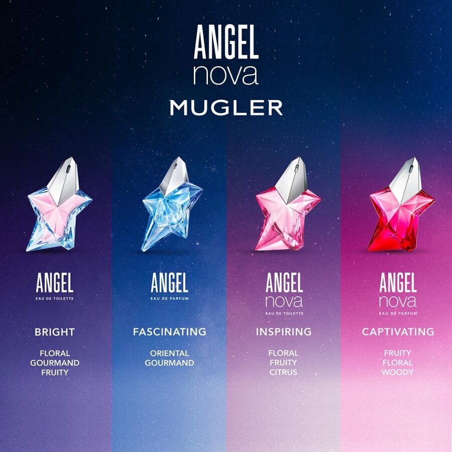Izjemno ženstvena in sveža parfumska voda Mugler Angel Nova te izziva, da postaneš pogumna in samozavestna ter se boriš za svoje sanje.
