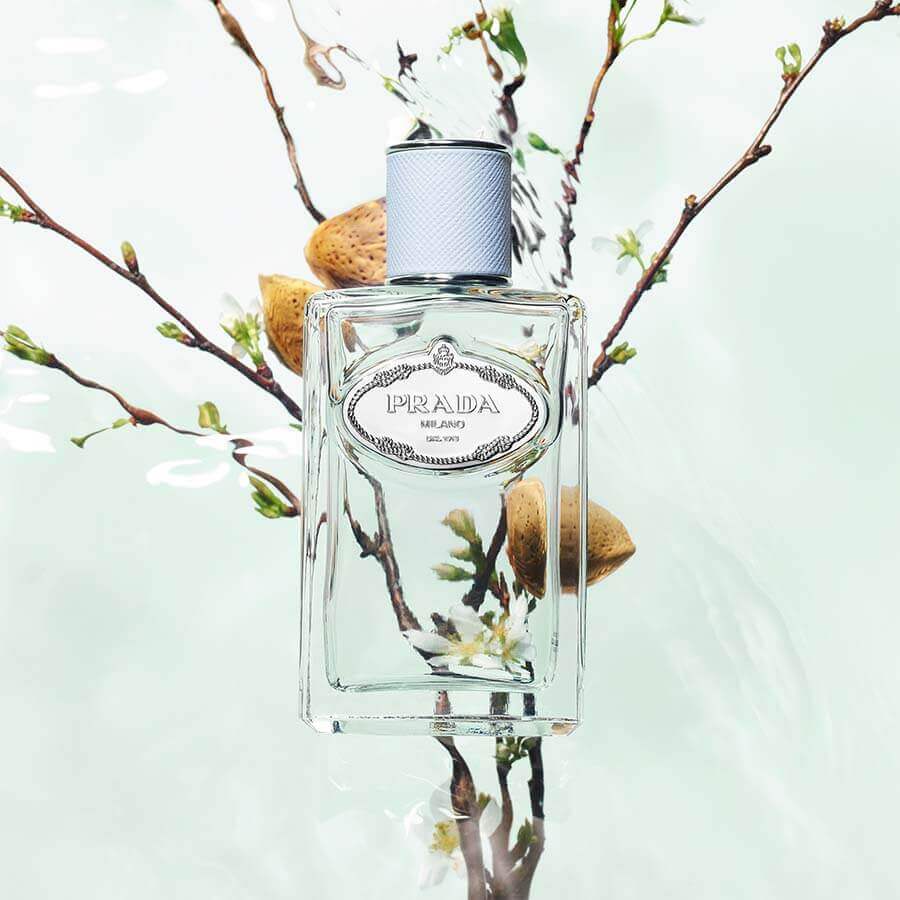Intenzivna in sodobna dišava Infusion d'Amande v posebni dišavni interpretaciji mandljev. Parfumska voda vsebuje note bogate sandalovine in praženega fižola tonka, poudarjene z živahno bergamotko in notami janeža, ki je posebna sestavina te dišave. Steklenička dišave Infusion d’Amande pooseblja bistvo Prada kode: hkrati starinska in prefinjena z nenavadnim, nekoliko čarobnim pridihom zelenega usnja saffiano, ki poudarja to zvezdniško sestavino.