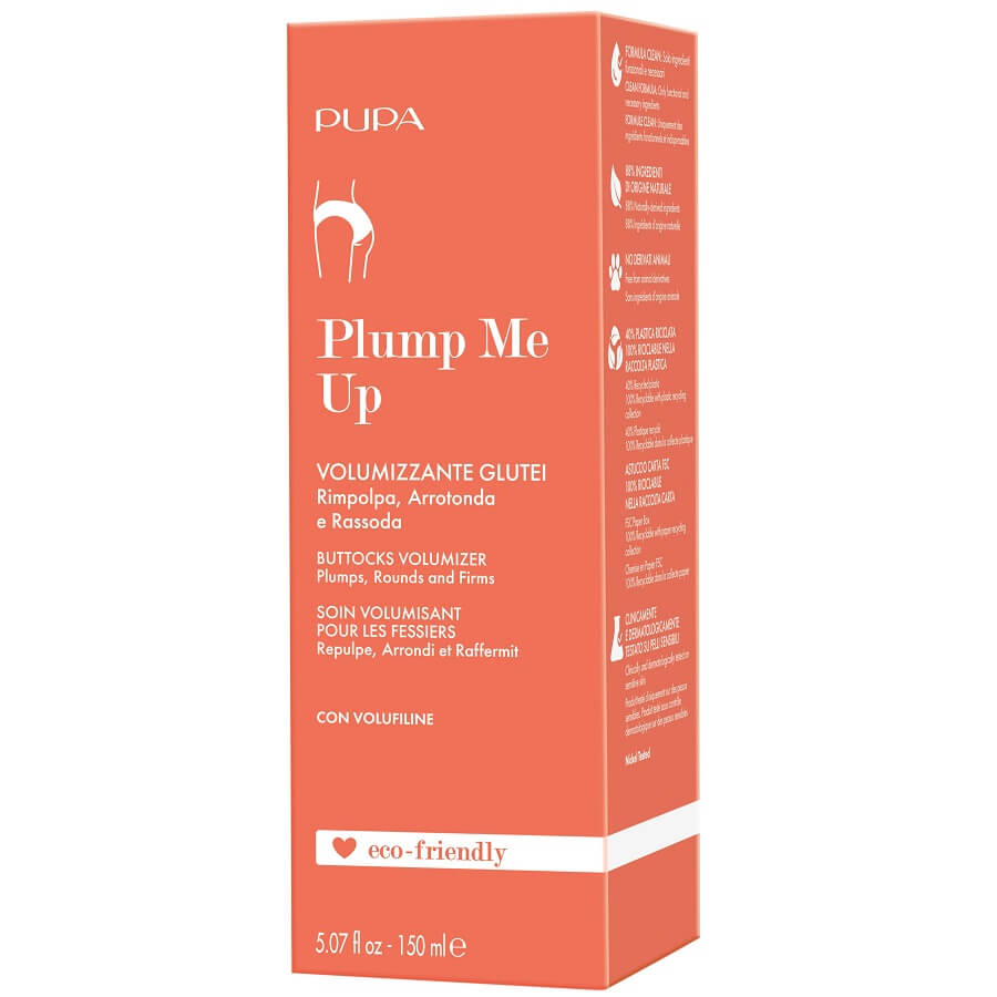 Plump Me Up tretma je idealna rešitev za tiste, ki si želite bolj okroglo, polno in čvrsto zadnjico. Tretma za izboljšanje, ki združuje delovanje Volufilina, naravnega izvlečka azijske gardenije, s takojšnjim učinkom zatezanja zahvaljujoč biofermentiranemu škrobu. Tekstura ledenega gela s hladnim učinkom naredi nanos hiter in prijeten.