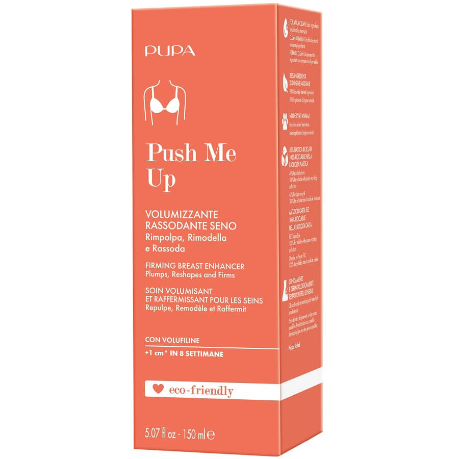 Klinični testi so pokazali: 1 cm* povečanje PRSNEGA OBSEGA Učinkovitost tretmaja so testirali na 80 osebah. Po 8 tednih uporabe, dvakrat dnevno, je dermatolog izmeril povprečno povečanje obsega prsi pri osebah, ki so uporabljale PUSH ME UP tretma. Izveden je bil s placebom kontrolirani dvojni 'slepi test'. 40 ljudi je uporabilo PUSH ME UP tretma; 40 ljudi je uporabilo placebo. 1 cm ustreza približno ½ velikosti košarice, glede na tabele velikosti večjih znamk spodnjega perila.