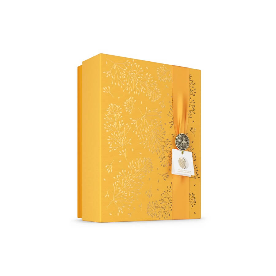 Ta čudovita darilna škatla je popolno darilo za prijatelja ali družinskega člana – ali za vas same. Kolekcija The Ritual of Mehr je ustvarjena za poživitev telesa, uma in duše. Vsak izdelek te kolekcije za dom in telo, ki je prežet z dišavo sladke pomaranče in cedrovine, bo izboljšal vaše razpoloženje in vaše srce napolnil s srečo. Set vključuje peneči gel za prhanje, kremo za telo, dišečo svečo in mini dišavne palčke. Brezplačni darilni škatli podarite novo življenje in jo uporabite za shranjevanje fotografij, pisem in drugih predmetov.
