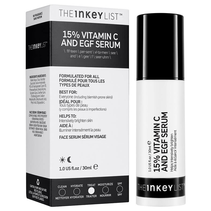 https://www.douglas.si/p/the-inkey-list-15-vitamin-c-and-egf-serum-ink21903INK2190315% Vitamin C and EGF Serumhttps://media.douglas.si/media/image/48/69/d3/INK21903.jpg16.9916.99EURInStockObraz/Serumi za obraz/Serum z vitaminom C<p>S to vrhunsko formulo dosežete gladko in zdravo kožo. Vitamin C v kombinaciji z EGF rastlinskega izvora tvori močno učinkovino, ki pomaga polepšati pusto kožo. EGF pomaga pri regeneraciji kože ter podpira naravni kolagen in elastin v matrici kože, medtem ko se askorbil glikozid na površini pretvori v čisti vitamin C za svetlejšo in enakomernejšo polt.<br><br> KLJUČNE SESTAVINE:</p>