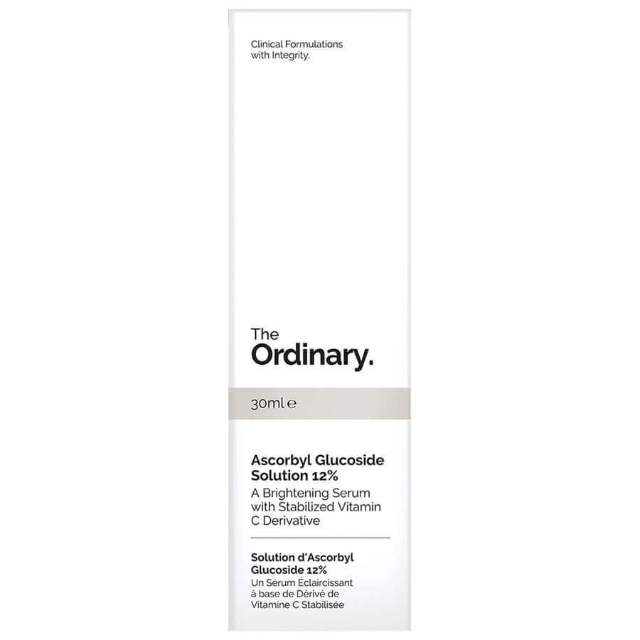 https://www.douglas.si/p/the-ordinary-ascorbyl-glucoside-solution-12-ord90649ORD90649Ascorbyl Glucoside Solution 12%https://media.douglas.si/media/image/33/58/c5/ORD90649.jpg17.9917.99EURInStockObraz/Serumi za obraz/Serumi za hidratacijo<p>Ascorbyl Glucoside Solution 12% vsebuje lahko formulo na vodni osnovi, ki pomaga zmanjšati znake staranja s posvetlitvijo in uravnavanjem neenakomernega tena kože. Za razliko od neposrednih oblik vitamina C, ta serum, enostaven za uporabo, vsebuje v vodi topen derivat vitamina C, ki se po nanosu pretvori v vitamin C, kar zmanjša možnosti draženja kože. Ker ima napredne antioksidativne lastnosti, kožo tudi ščiti pred vidnimi učinki poškodb, ki jih povzročajo okoljski stresorji. Prav tako pomaga ohranjati sijočo polt.</p>