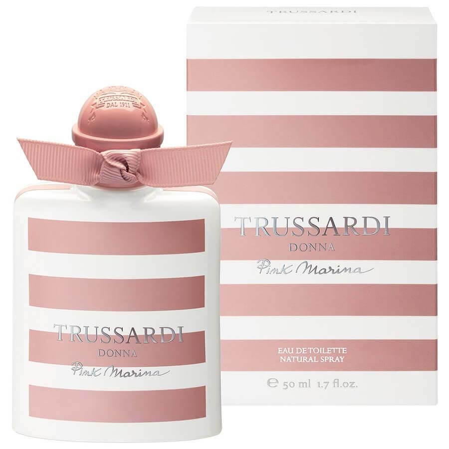 Pink Marina, nova ženska toaletna voda Trussardi Parfums, je posvečena temu posebnemu trenutku. Očarljive note rožnate grenivke se mešajo s svežimi, nalezljivimi notami lubeničnega sorbeta in iskrivo energijo limoninega soka. Tej začetni sijoči svežini se pridruži nova harmonija: prefinjena in uravnotežena mešanica nerolija, peščene lilije in morske soli. Krog zaprejo čutne in kremne note sandalovine in cedre s pačulijem.<br><br>