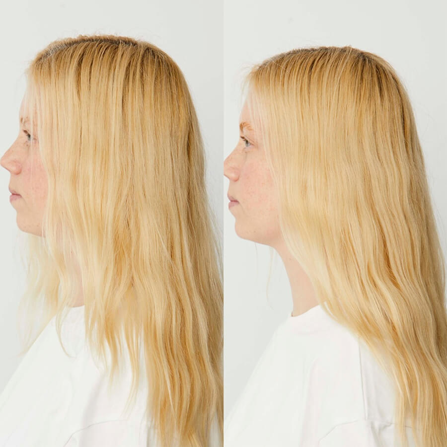 Ne glede na to, ali se soočate s poškodbami zaradi barvanja, toplotnih obdelav ali so bili vaši lasje preprosto dlje časa izpostavljeni stresu, R·1 Pre-Wash Damage Repair Mask deluje kot pravi "reset" gumb za lase. Zahvaljujoč inovativnemu RDS Bond kompleksu maska pomaga obnoviti poškodovano strukturo las in povrniti njihovo moč ter raven vlažnosti – še preden si lase splaknete.