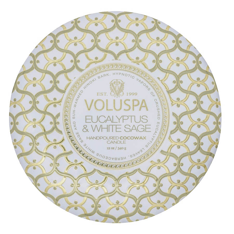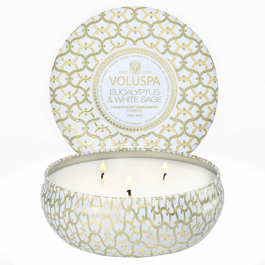 VOLUSPA Eucalyptus & White Sage 3 Wick Tin Candle Dišeča sveča