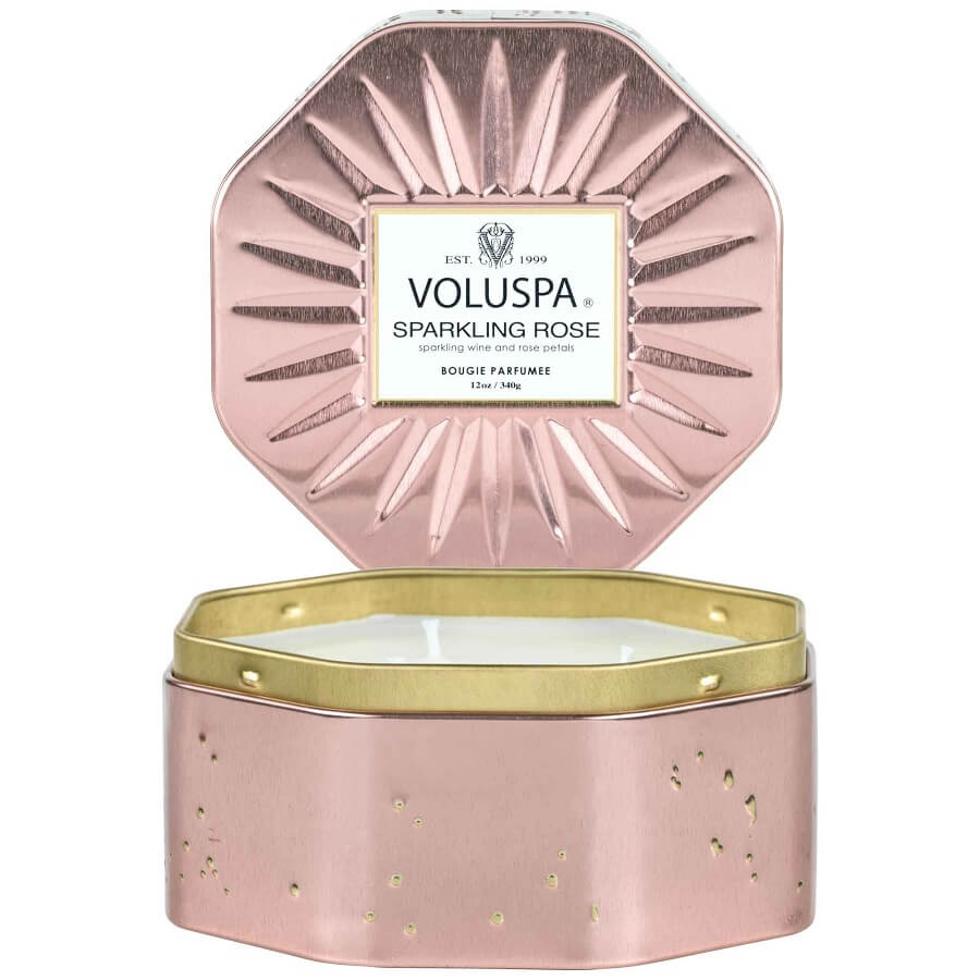 VOLUSPA Sparkling Rose Octagon Tin Candle Dišeča sveča