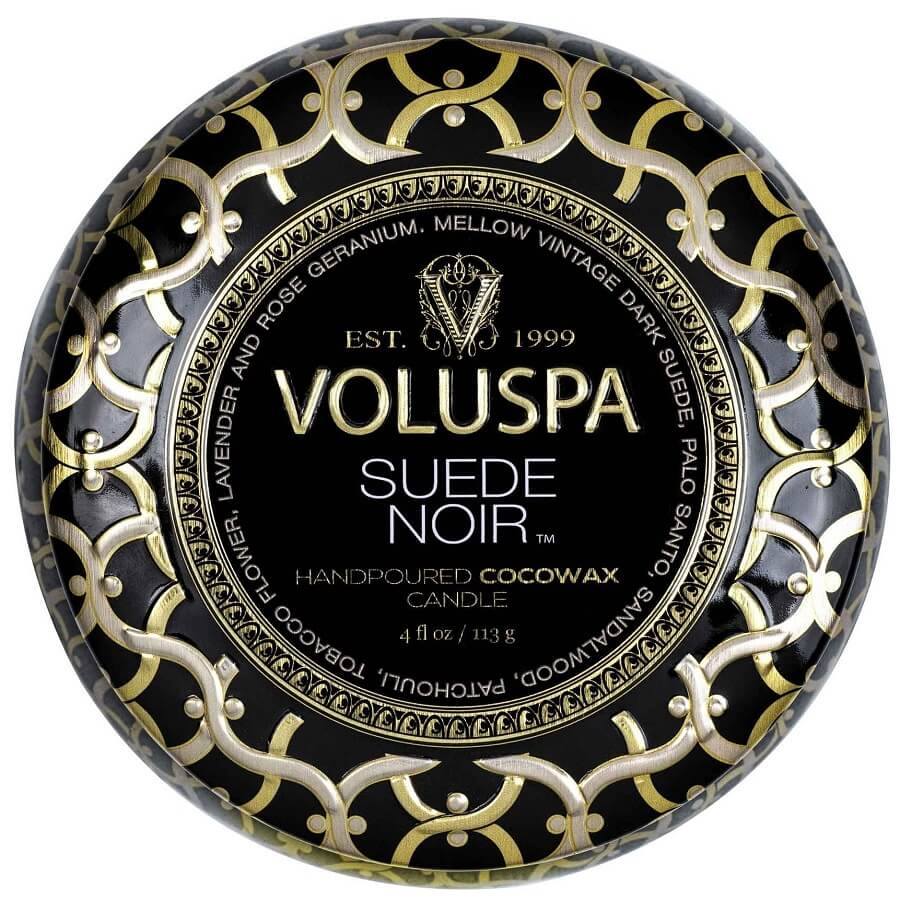 VOLUSPA Suede Noir Mini Tin Candle Dišeča sveča