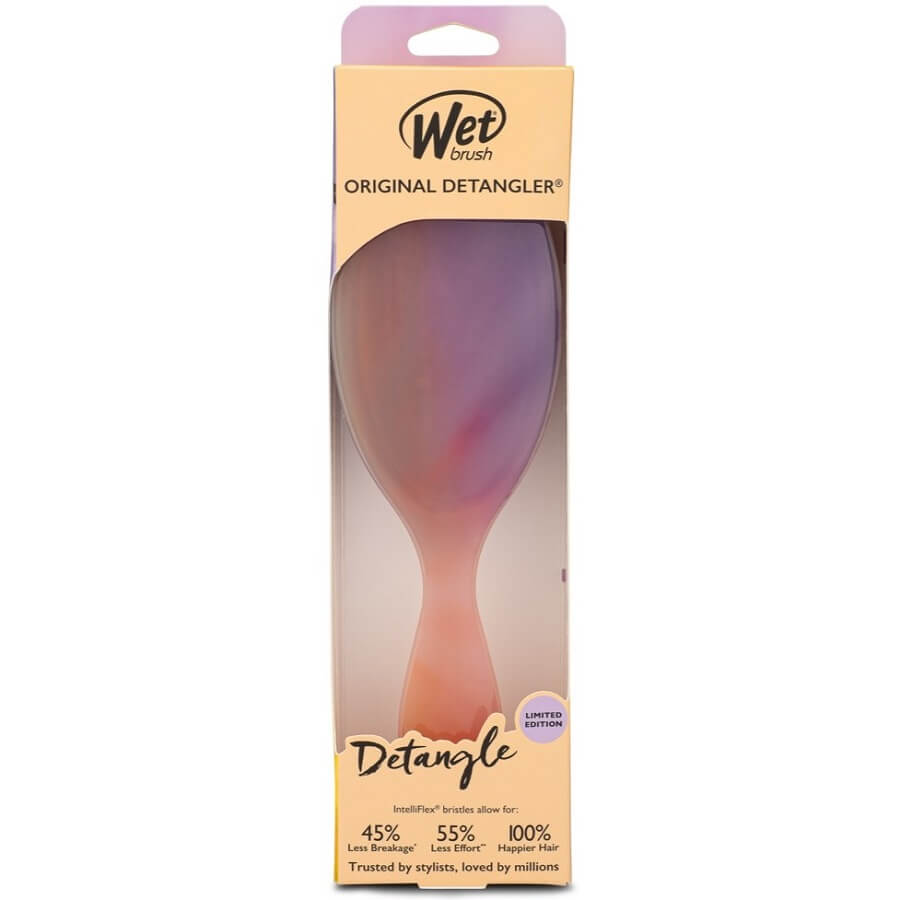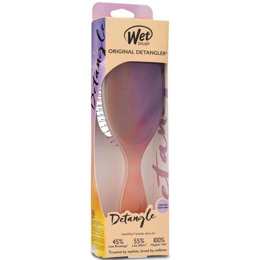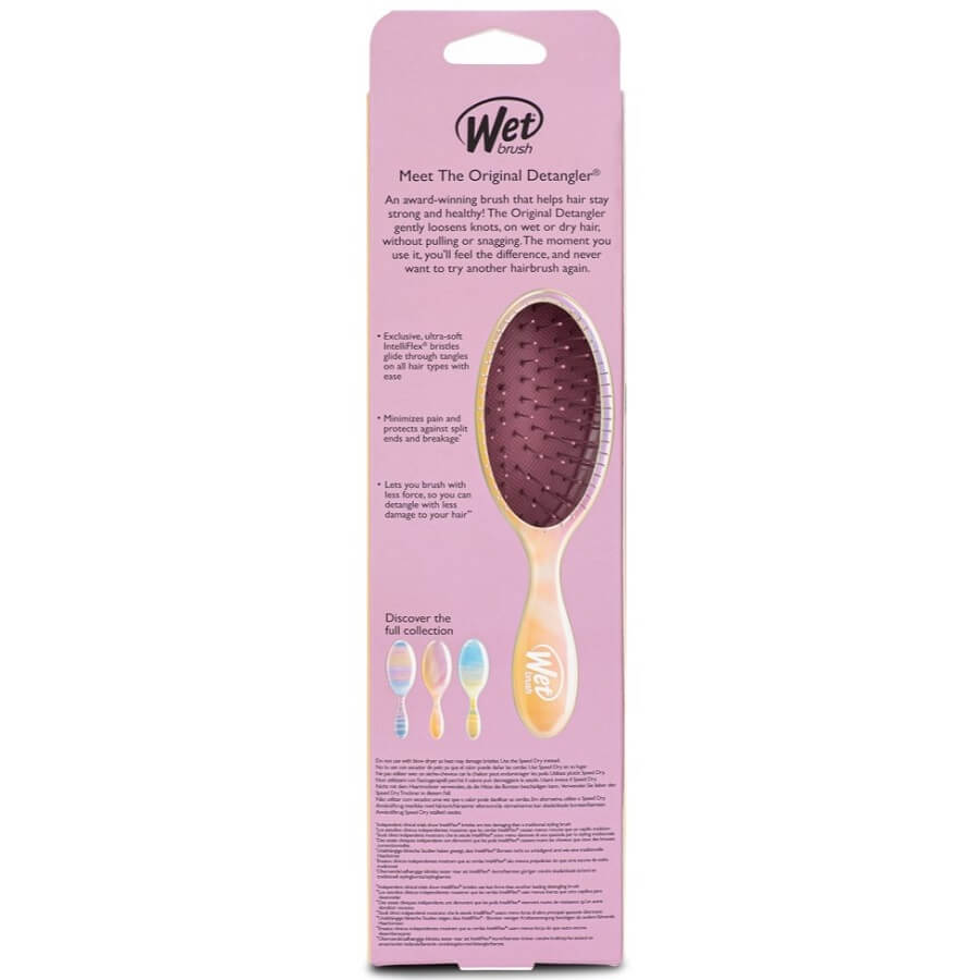 WetBrush Original Detangler je revolucionarna krtača, zasnovana posebej za mokre lase. Ima izjemno mehke ščetine IntelliFlex, ki zlahka polzijo skozi zavozlana področja. Krtača zmanjša bolečino in lomljenje las. Primerna je za vse tipe las in se odlično obnese tako na mokrih kot suhih laseh. Prožne ščetine se prilagajajo obliki lasišča in zagotavljajo nežno masažo. Ergonomski ročaj zagotavlja udoben oprijem. Na voljo je v različnih barvah in vzorcih. Krtača zmanjša izpadanje las z minimalnim zatikanjem in puljenjem. Je lahka in enostavna za prenašanje. Idealna za uporabo po tuširanju in plavanju.