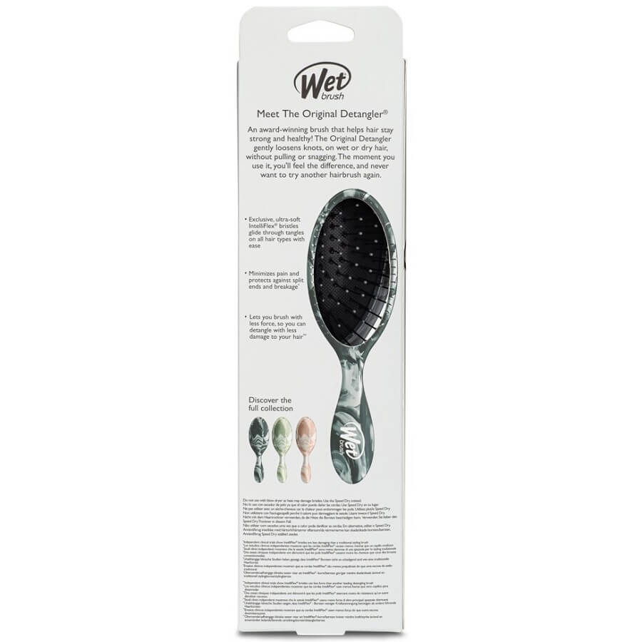 WetBrush Original Detangler je revolucionarna krtača, zasnovana posebej za mokre lase. Ima izjemno mehke ščetine IntelliFlex, ki zlahka polzijo skozi zavozlana področja. Krtača zmanjša bolečino in lomljenje las. Primerna je za vse tipe las in se odlično obnese tako na mokrih kot suhih laseh. Prožne ščetine se prilagajajo obliki lasišča in zagotavljajo nežno masažo. Ergonomski ročaj zagotavlja udoben oprijem. Na voljo je v različnih barvah in vzorcih. Krtača zmanjša izpadanje las z minimalnim zatikanjem in puljenjem. Je lahka in enostavna za prenašanje. Idealna za uporabo po tuširanju in plavanju.