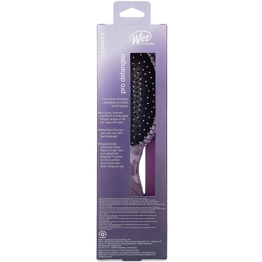 WetBrush Pro Detangler uporabite na mokrih ali suhih laseh. Začnite na konicah in nadaljujte proti koreninam. Idealen za profesionalno uporabo v salonih in nego doma.
