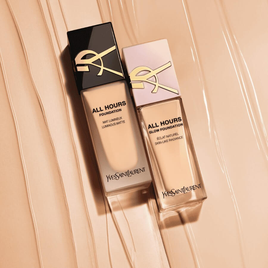 Doživite transformativno moč tekočega pudra Yves Saint Laurent ALL HOURS Glow – popolno zlitje nege kože in ličil, ki zagotavlja brezkompromisno sijoč ten. Ta inovativna podlaga brezhibno združuje koži podobne pigmente z razkošno serumsko osnovo ter ustvarja vrhunski couture sijaj kože. Več kot le ličilo: ALL HOURS Glow kožo obogati s koncentrirano dozo aktivnih sestavin, vključno s hialuronsko kislino in niacinamidom, za vidno preobrazbo.