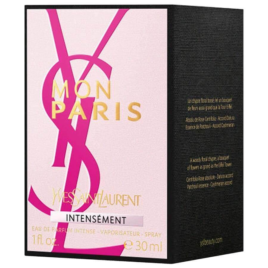 Nova dišava Mon Paris Intensement prinaša ljubezensko zapeljevanje z dragocenim absolutom vrtnice v samem osrčju dišave. Dišava izžareva strasten, cvetlični sijaj in pretvarja očarljiv bel cvet dature v toplo fuksijo. Najbolj sijoč pačuli prežema dišavo z bogato intenzivnostjo, kašmir pa poudarja eleganten cipresni podpis.