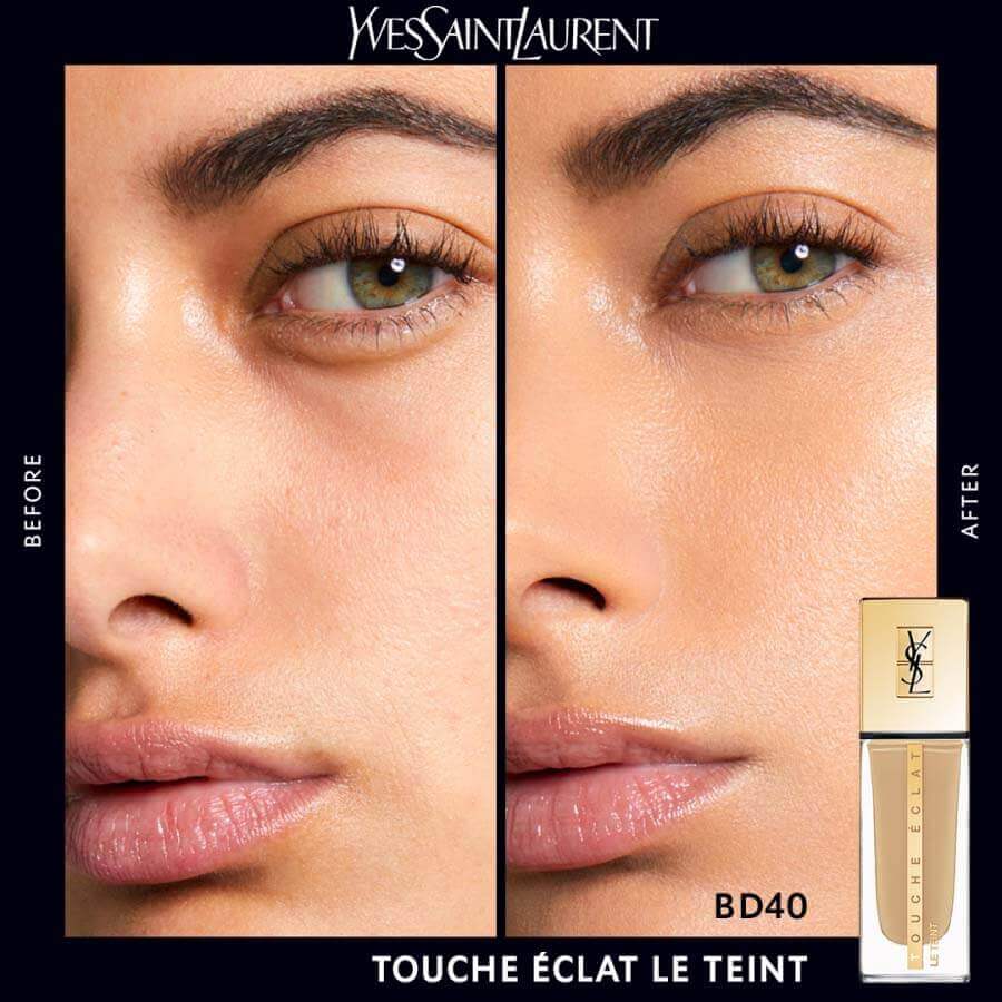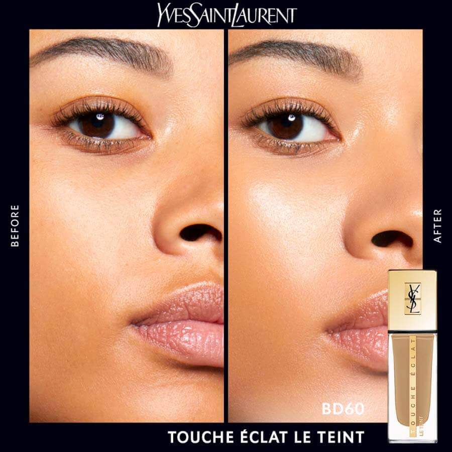 Tekoči puder Touche Éclat Le Teint zagotavlja do 24 ur prekrivne moči z lahkim občutkom na koži in 24 ur hidracije za dolgotrajen in brezhiben videz. Puder omogoča enostavno nadgradnjo v močno prekrivnost. Tekoči puder Touche Éclat Le Teint ima SPF 22 za vsakodnevno zaščito kože. Puder, ki zagotavlja naraven, zdrav sijaj in brezhiben videz brez občutka teže in lepljivosti na koži.